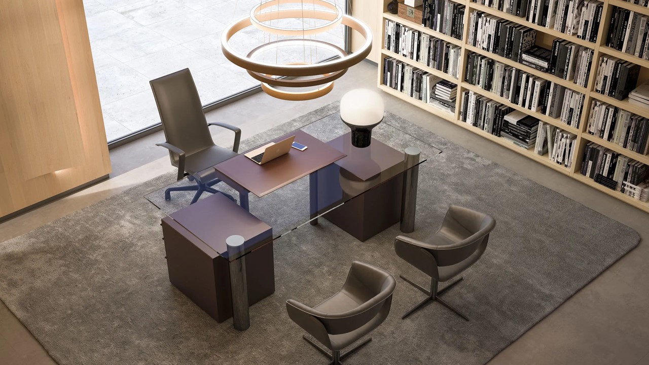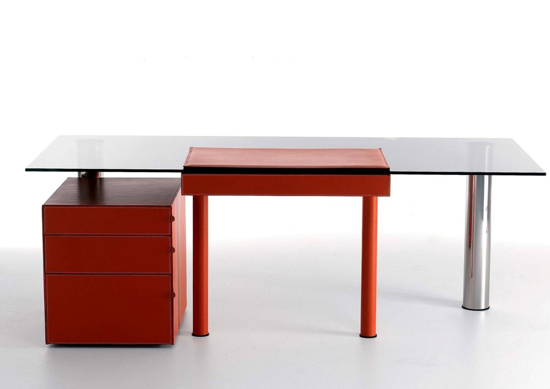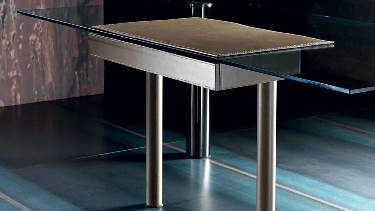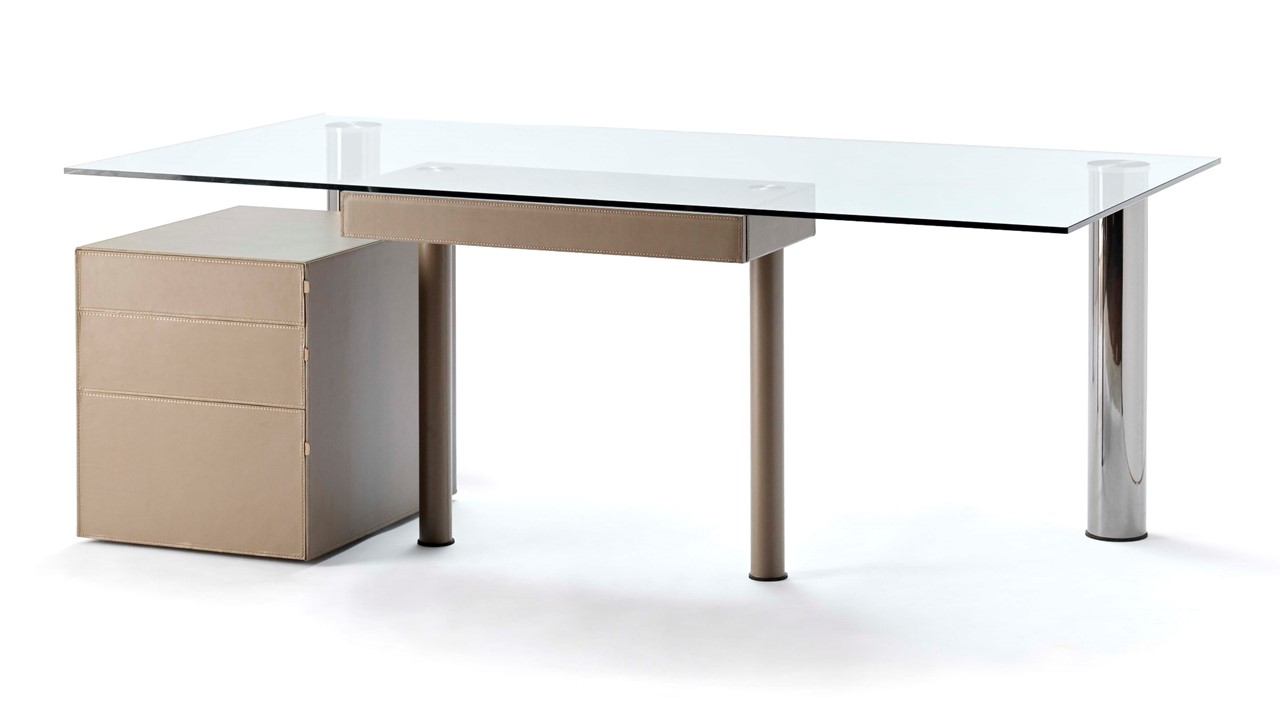 The Abe Saddle Leather Desk is a study in balance and refinement, where Italian craftsmanship meets contemporary sophistication. Its structure pairs front legs in polished stainless steel with back legs elegantly wrapped in full-grain leather, creating a striking contrast of materials and textures. A tempered glass top adds visual lightness, while the leather-clad drawer and desk pad introduce warmth, tactility, and comfort. Each detail reflects meticulous attention to proportion and finish, resulting in a desk that embodies understated power and modern luxury.