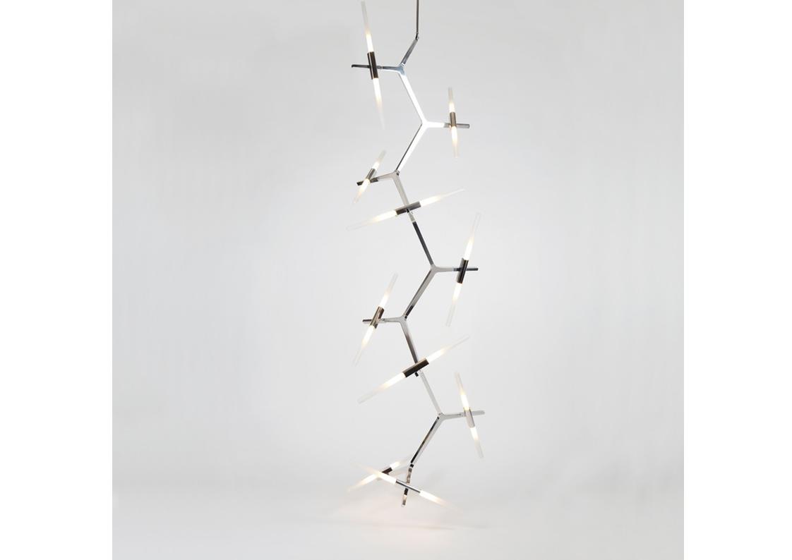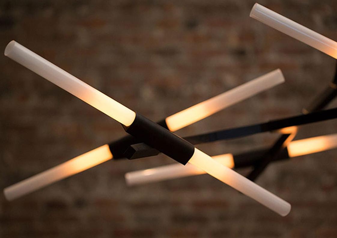 Lindsey Adelman’s Agnes chandeliers for Roll & Hill feature a modular structure that can be assembled in configurations from a modest, 6‐light chandelier to a large 20‐light cascading chandelier. “Agnes, in its ideal state, would be a very large fixture. You could fill up a whole ceiling,” says the designer Lindsey Adelman. Articulated joints allow for the bulbs to be rotated and arranged in a multitude of ways. The bulbs can be completely vertical, in a churchlike state or at irregular angles in a more whimsical arrangement.