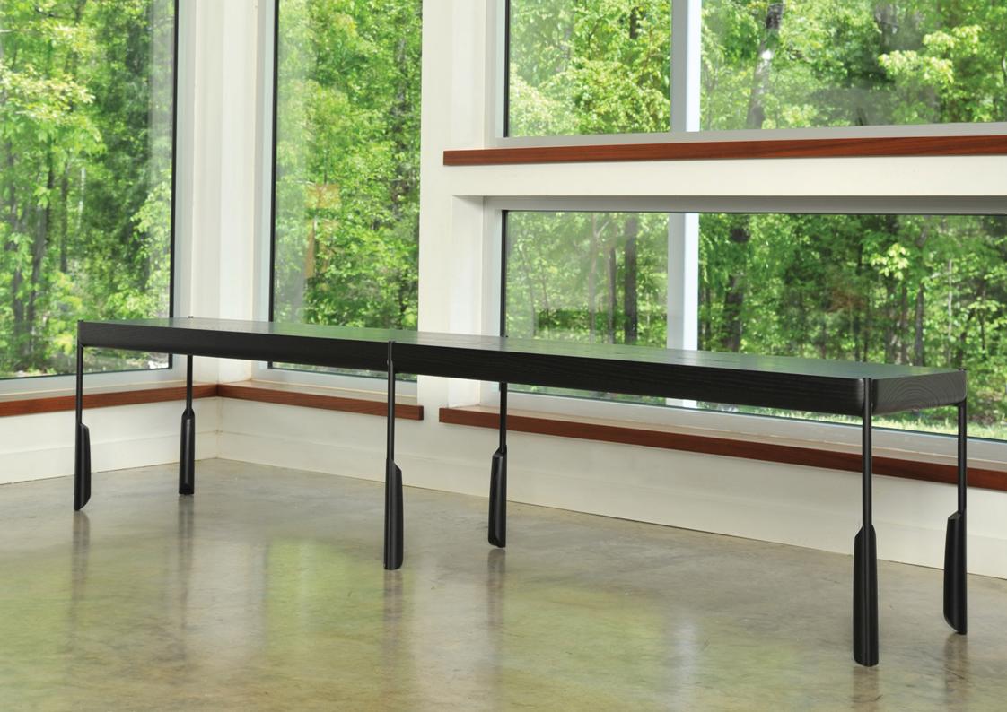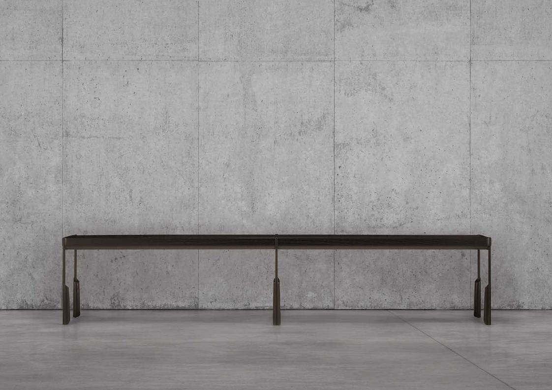 The Altai Series Bench by Jacob Marks features a 2.5” thick solid timber seat with matching carved leg elements. Legs may be any standard or custom metal option. Four + 6 leg options depending on size – This item is suitable for contract or residential use.
