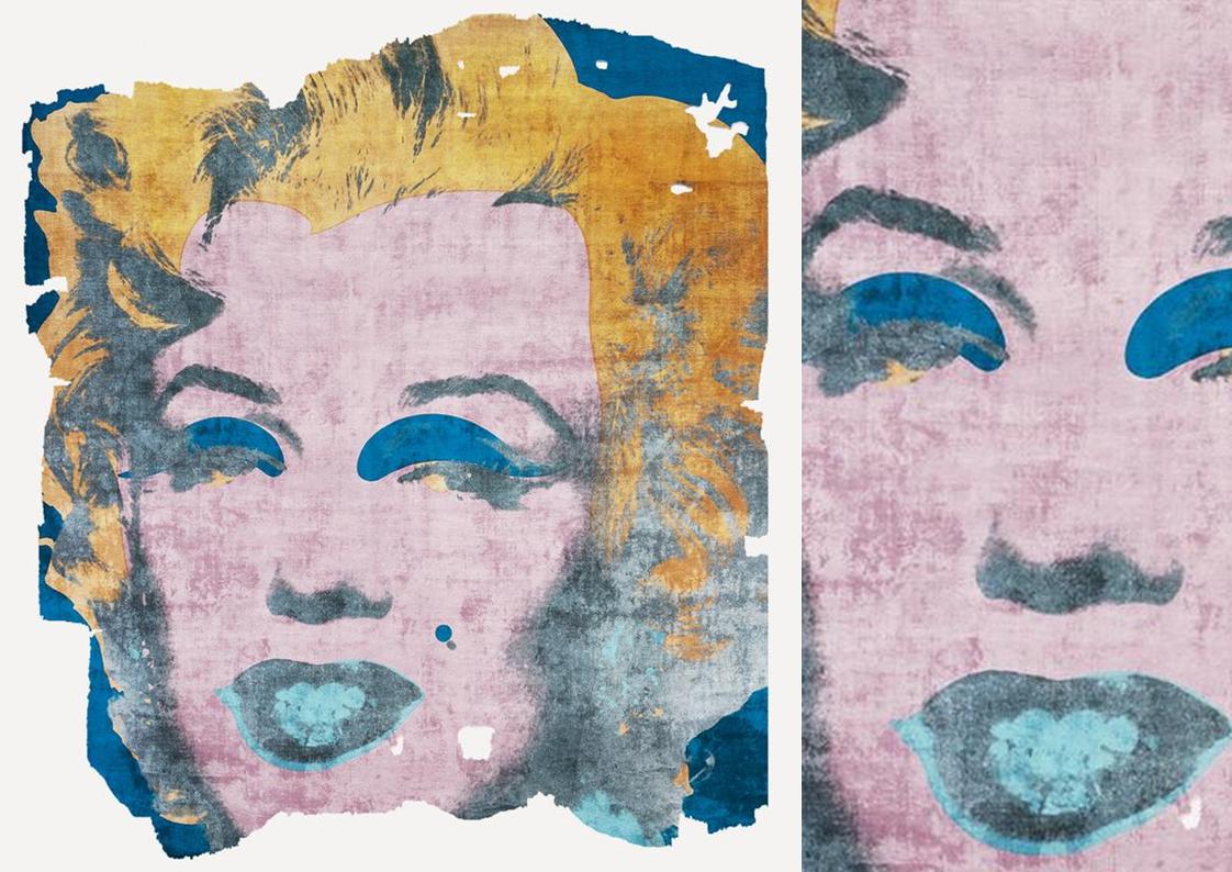 Based on Marilyn, 1967 – The Color Series are a groundbreaking collection of handmade art rugs in collaboration with The Andy Warhol Foundation for the Visual Arts. The original Monroe portraits have been deconstructed and appropriated by Calle Henzel. Henzel applied his signature design characteristics; free-form organic shapes, strategically placed holes, uneven punk-like fringes, and elaborate surface treatments. Hand-knotted in fine silk yielding exuberant color and depth. These pieces are a limited edition and by private commission only – please inquire.
