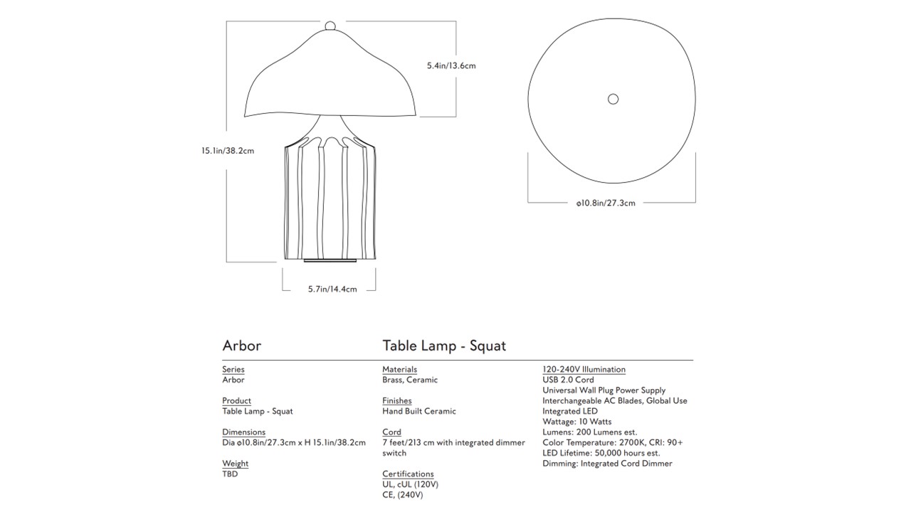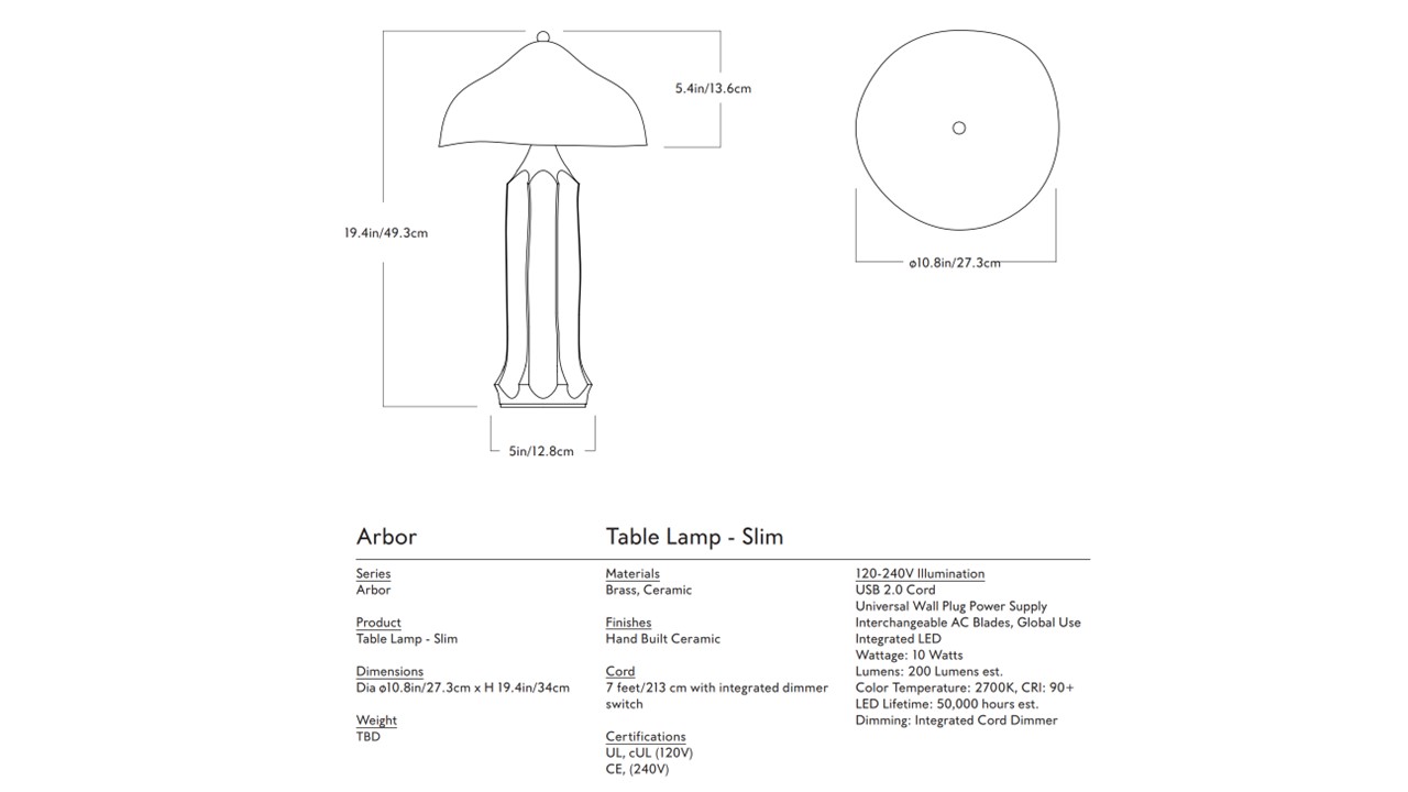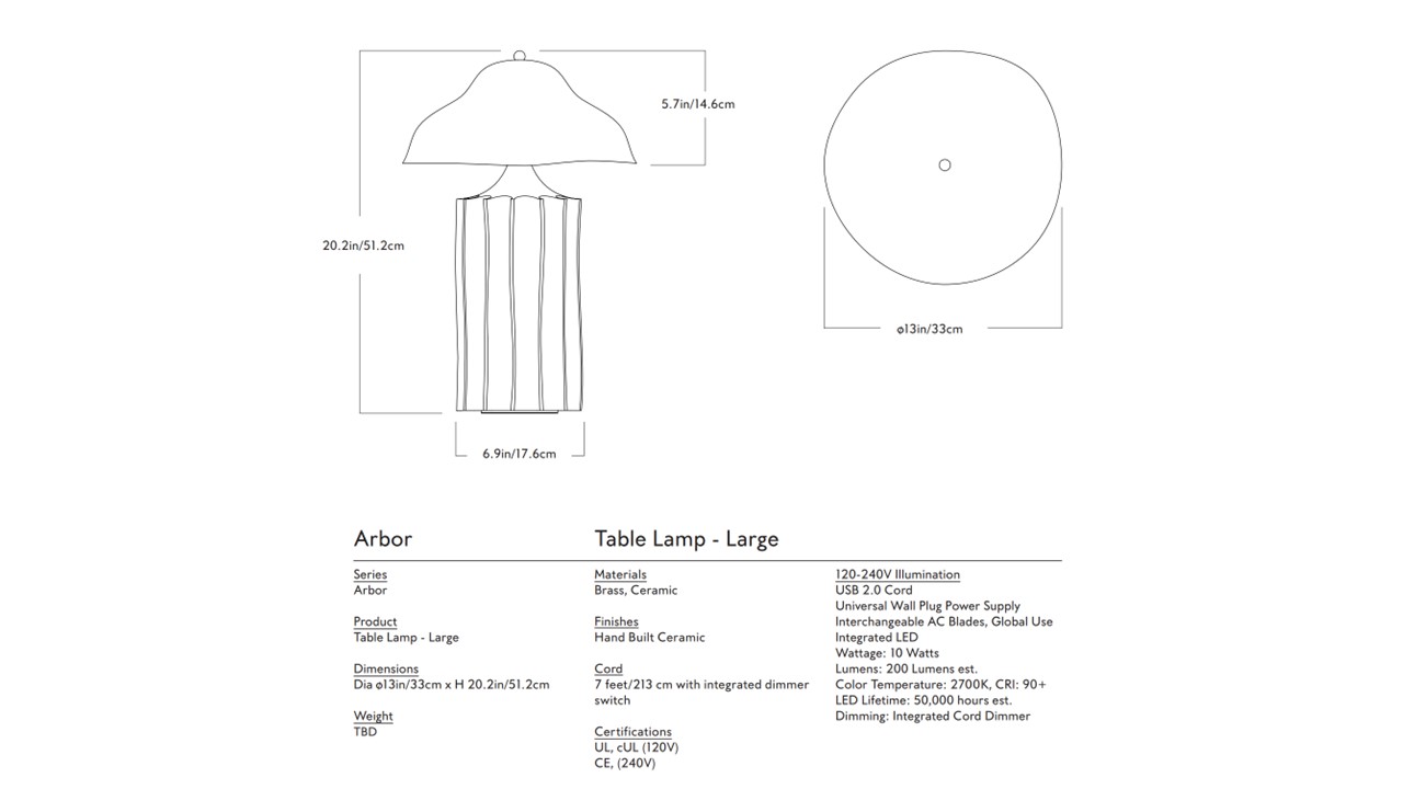 The Arbor Table Lamp by Roll & Hill reflects designer Christopher Merchant’s nuanced exploration of geometry, proportion, and material honesty. Its base is defined by deep, rhythmic ridges—creating a sense of weight, cadence, and sculptural presence—while the bell-shaped ceramic shade introduces a softer counterpoint. Crafted in ceramic, Arbor embraces the inherent richness of clay—its earthy character, subtle tonal variation, and tactile depth. The dialogue between structured geometry and organic materiality results in a piece that feels both deliberate and intuitive. Balanced yet expressive, Arbor functions as both illumination and object—bringing a grounded, architectural calm to interiors that favor texture, restraint, and form-driven design.