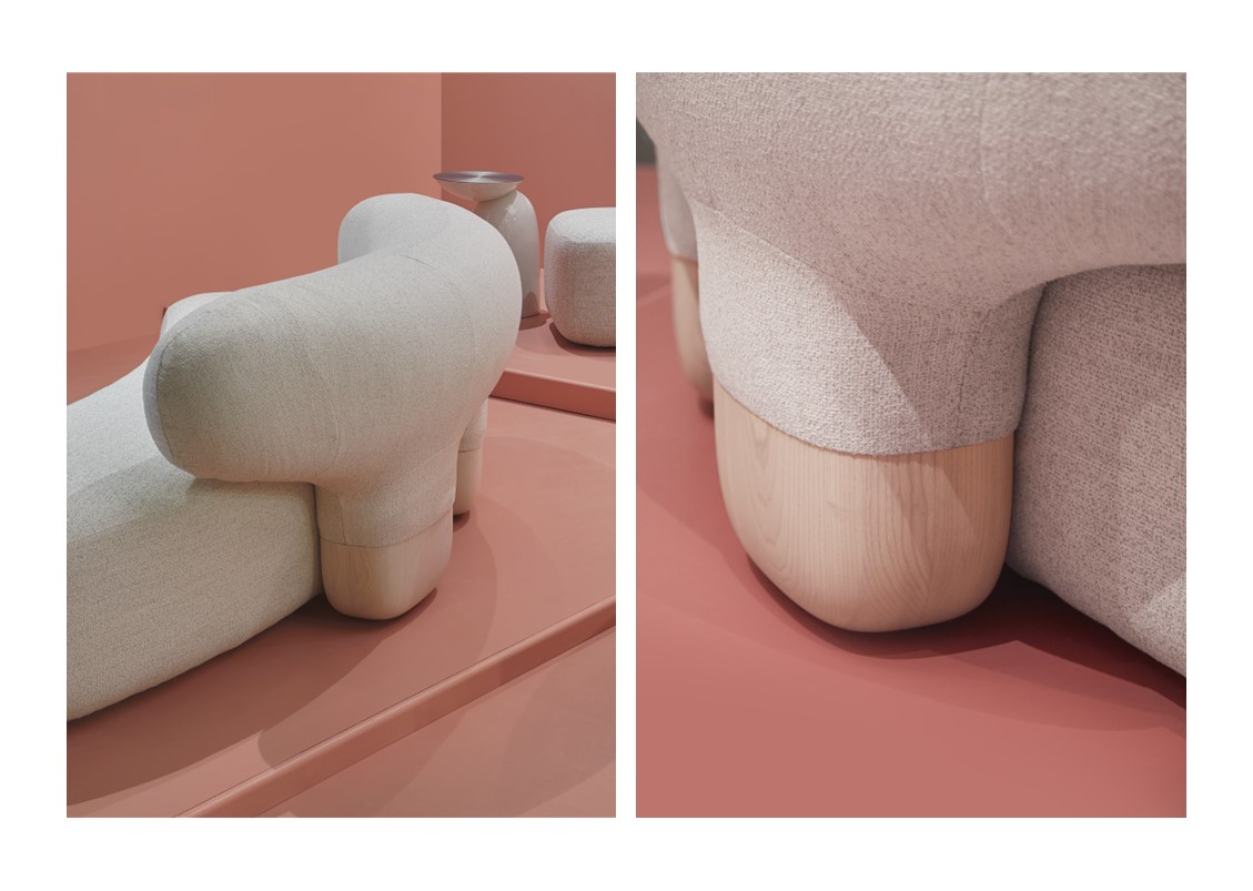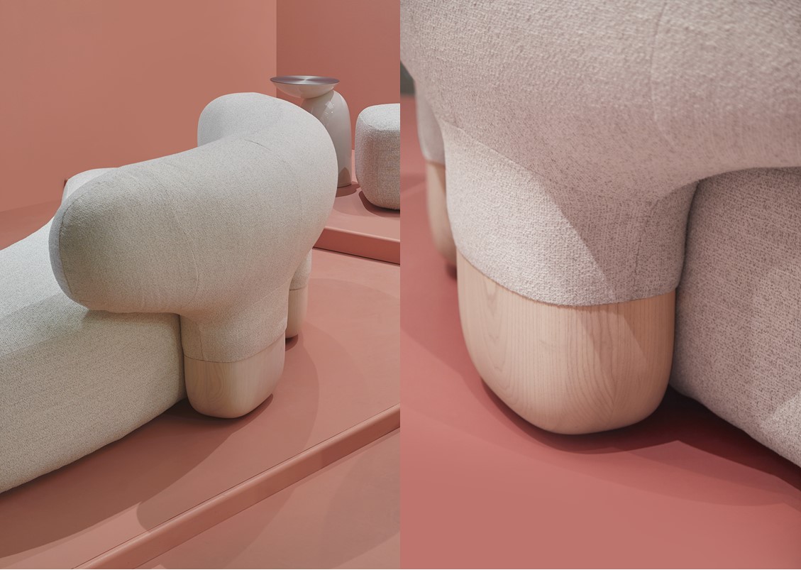 The Asawa sofa is characterized by a sculptural and organic back that seems to have grown from the ground up. Two solid wood pieces act as the base for this curving and enveloping structure which wraps around the base of the sofa. The curved seat of the sofa means Asawa takes center stage, always slightly away from the wall, opening itself up to the room from all angles. Asawa is available with 3 distinct sizes of seats as well as in an accompanying armchair version. Asawa is customizable in many fabric, leather and wood options.