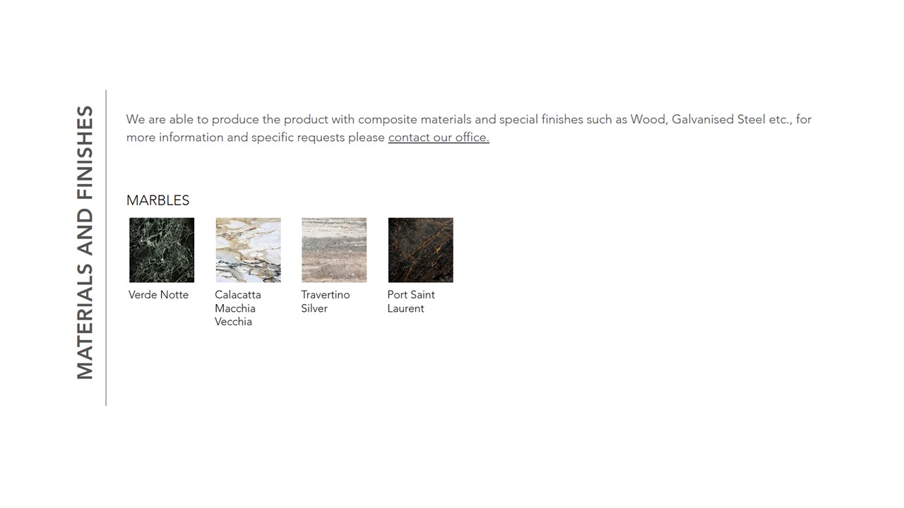 stone finishes: verde notte, Calacatta macchia vecchia, port saint laurent, travertino silver