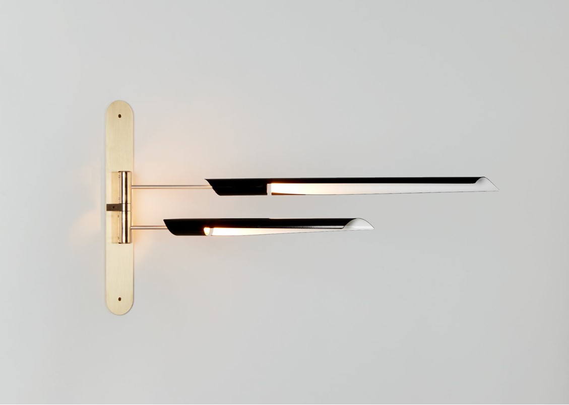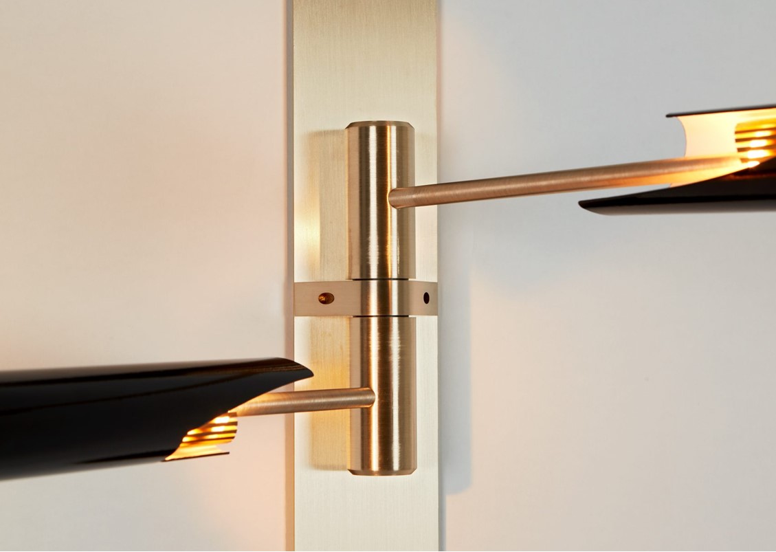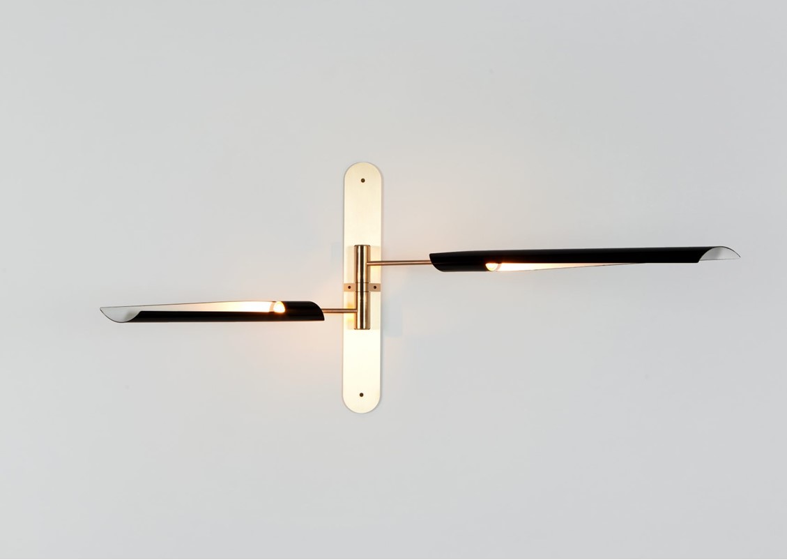 Boden is a sculptural fixture emanating from irregular balance points. Designed to be versatile in application, the components feel equally refined as a single piece or installed as repeating architectural elements, or groups. The Boden shades contain a dimmable LED source and rotate to cast light directionally. The design is intricate, refined, and elegantly efficient. Available in single or 2 arm styles