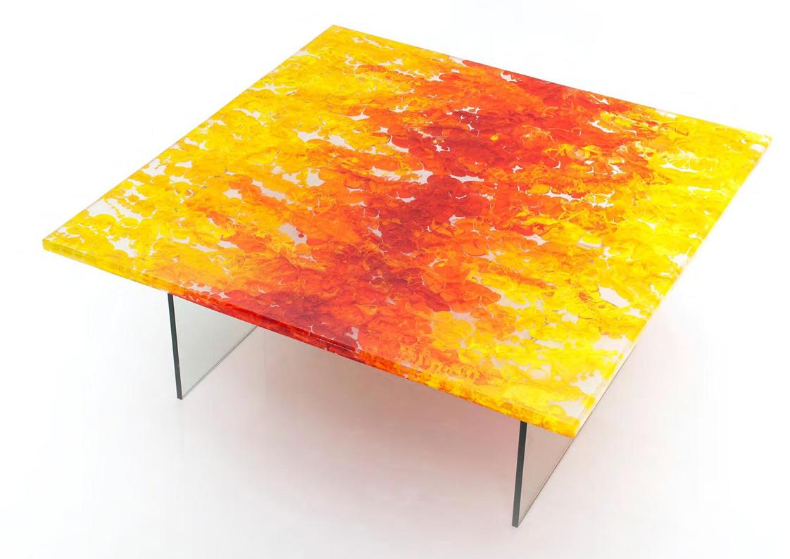 Part of our Modern Masters Series, the Boiled Glass Tables are pioneered and hand-constructed by world-renowned artist Orfeo Quagliata. The technique of boiling glass is a chaotic science that yields an unpredictable yet alluring masterpiece of swirling, rich, vibrant color – like a slice of a solar nebula frozen in time. Each piece will be unique due to the process and is hand-made and signed by the artist. Private commissions only – please inquire.