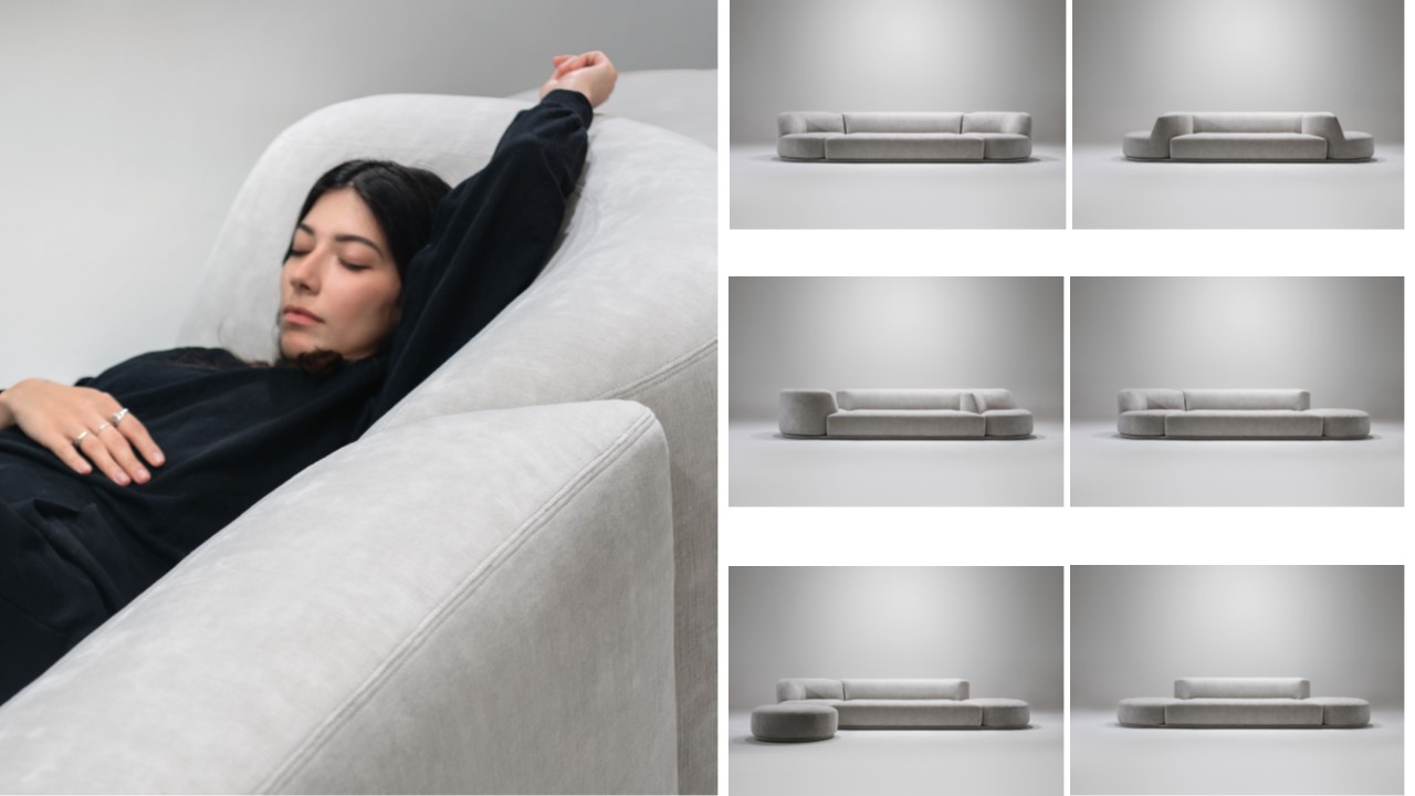 Bordone originates from the desire to create something as flexible as our lives, mixing roles & functions. In today’s world, we eat, sleep, play, work, and unwind on the sofa – we wanted to carve out a cocoon-like space that would cater to all of that. The final product has converged into this revolutionary sofa that is simple, smart and comfortable. Available in several configurations – please inquire