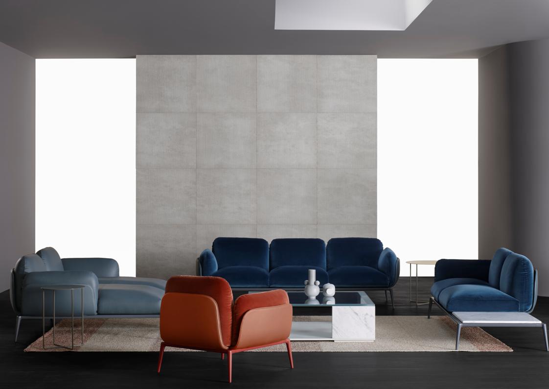 materials: lacquered aluminum, multi density foams + Italian fabrics / leathers