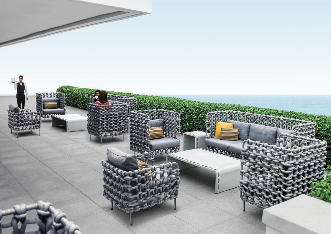 outdoor: acrylic fabric, reticulated foam, stainless steel, steel - (pale grey)