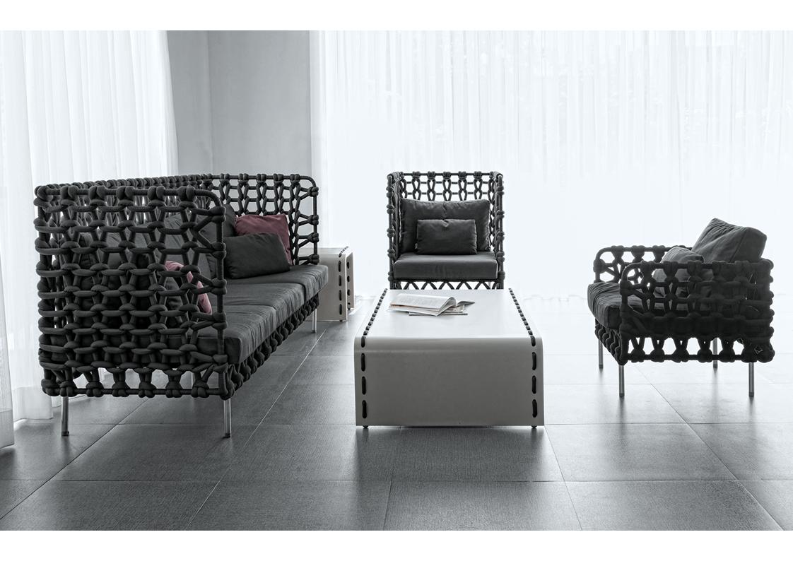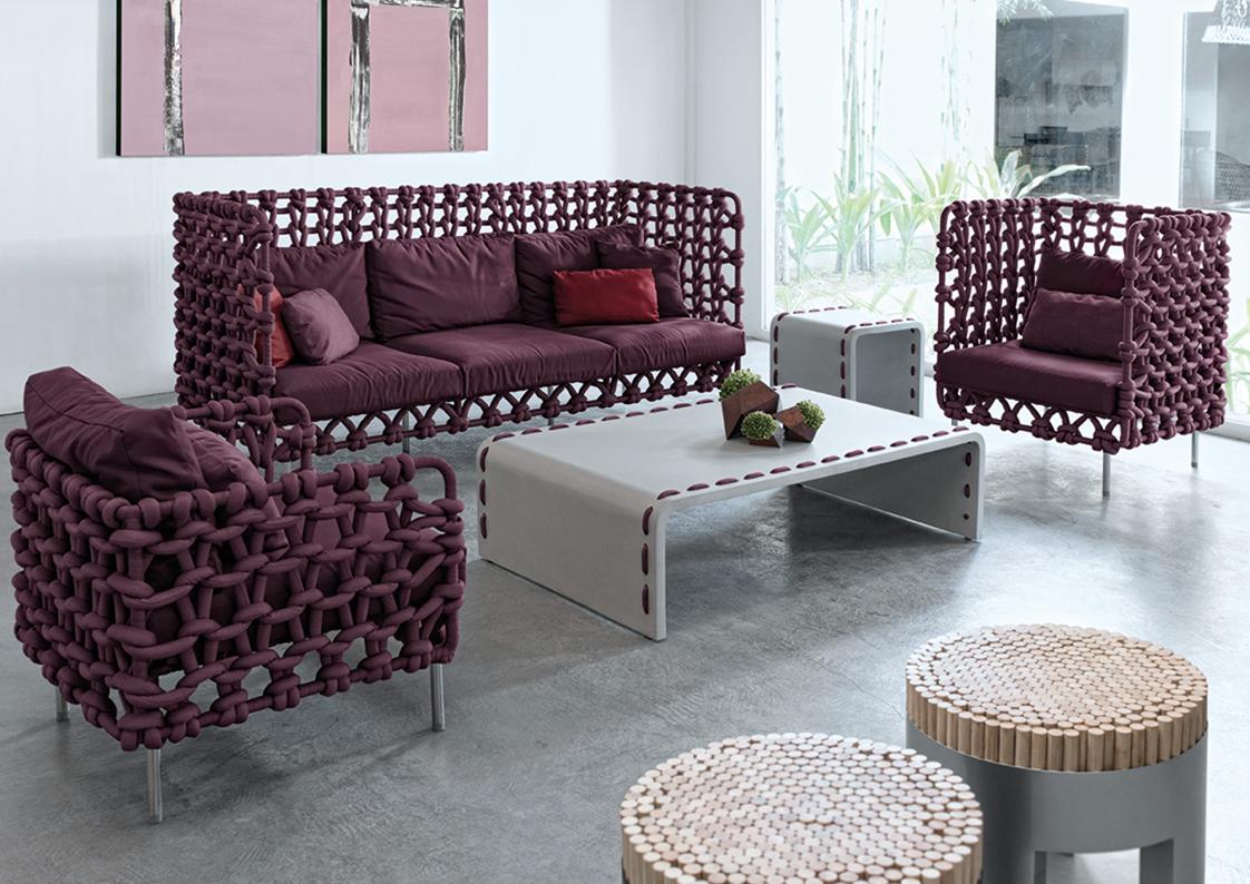 indoor: polyester fabric, stainless steel, steel, urethane foam - (charcoal, plum + sand)