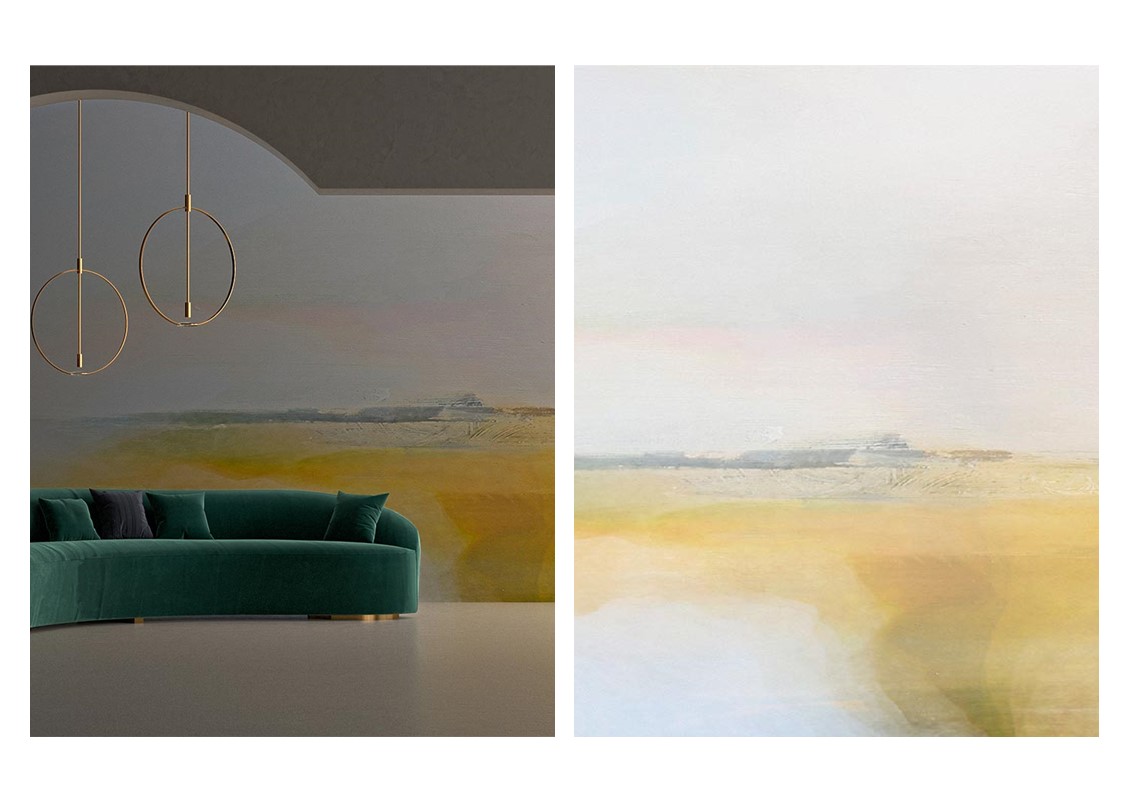 The Compendium Collection is a real acrylic on canvas portraying different versions of sunsets and landscapes. Its pastel colors create a sense of tranquillity and a calming atmosphere.