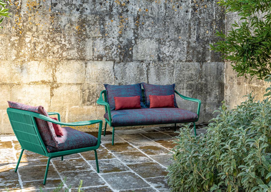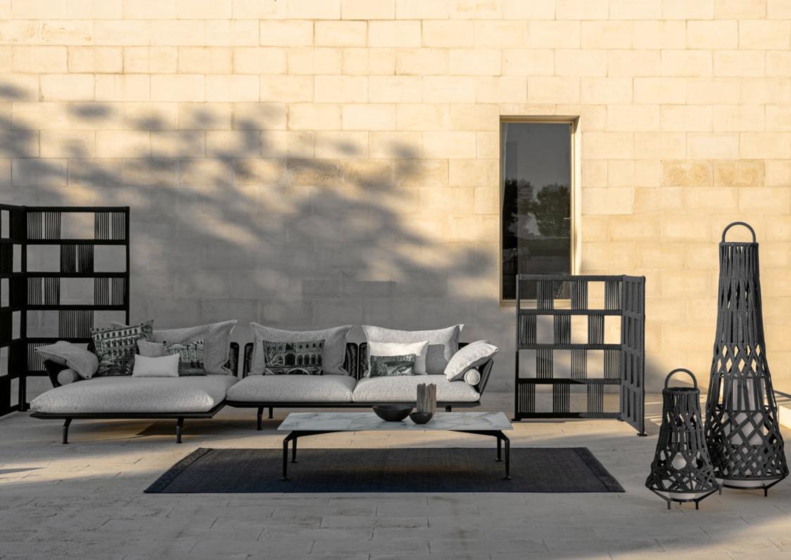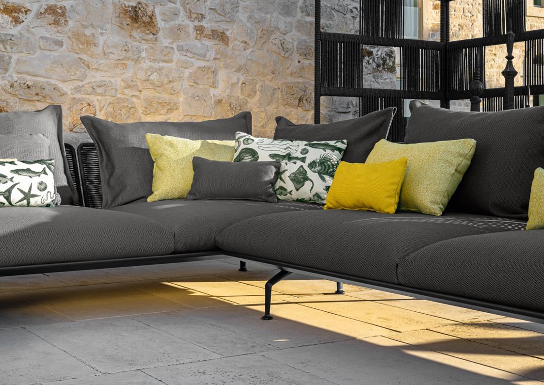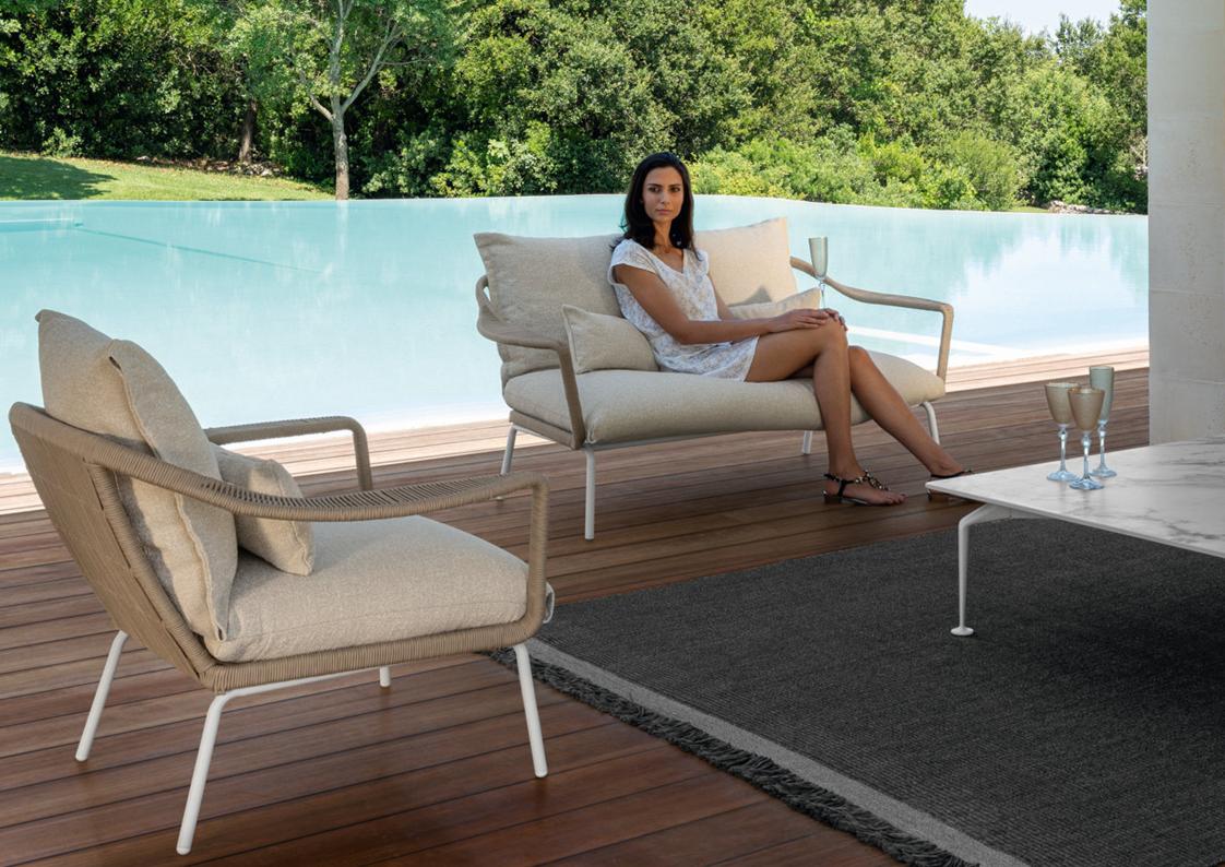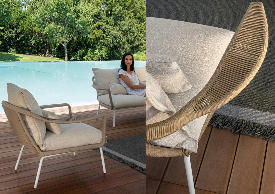 materials: die-cast aluminum, synthetic rope, outdoor fabrics + quick dry foam