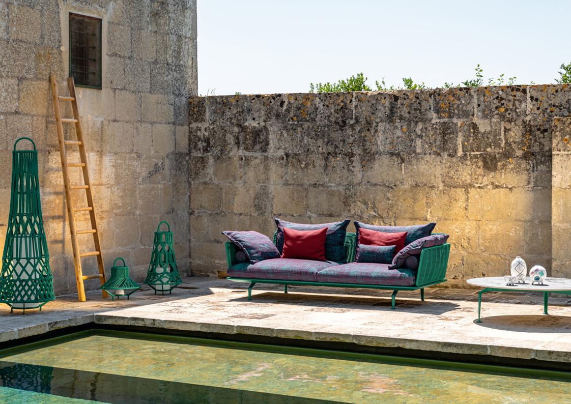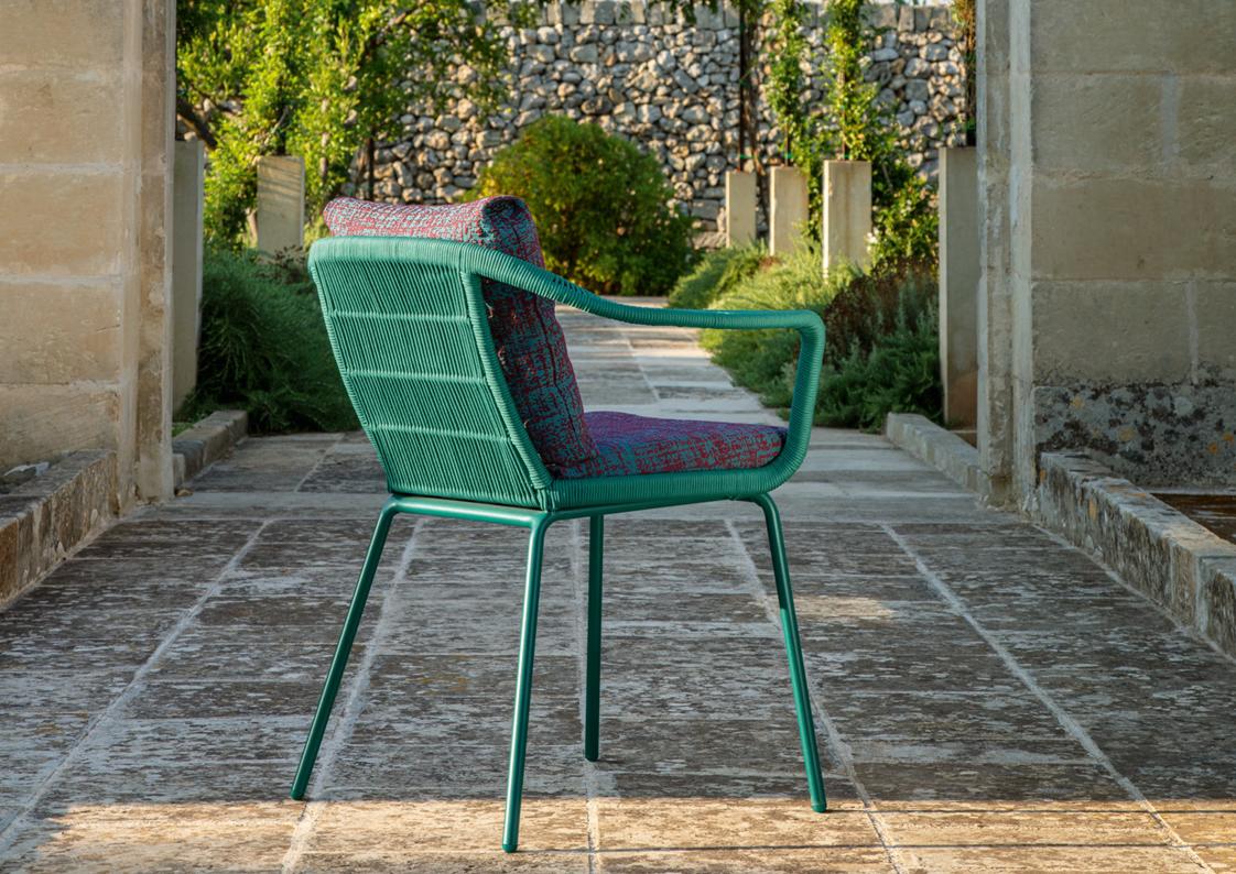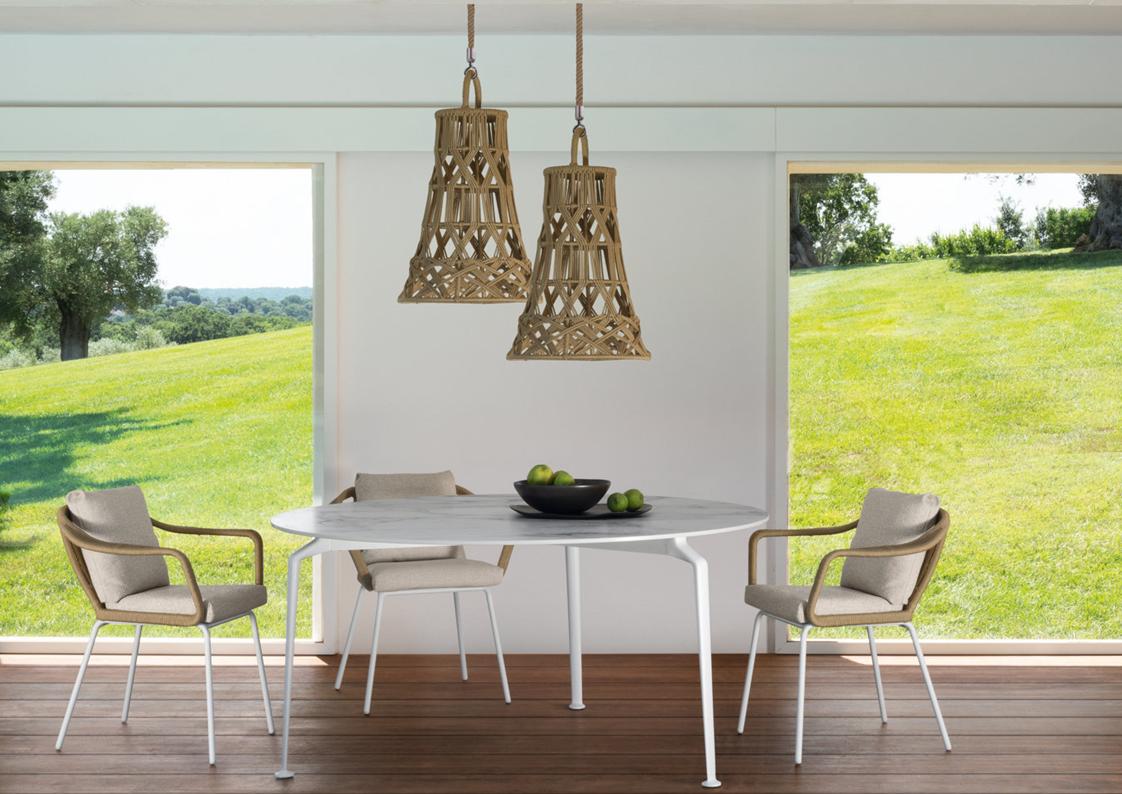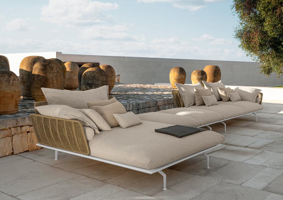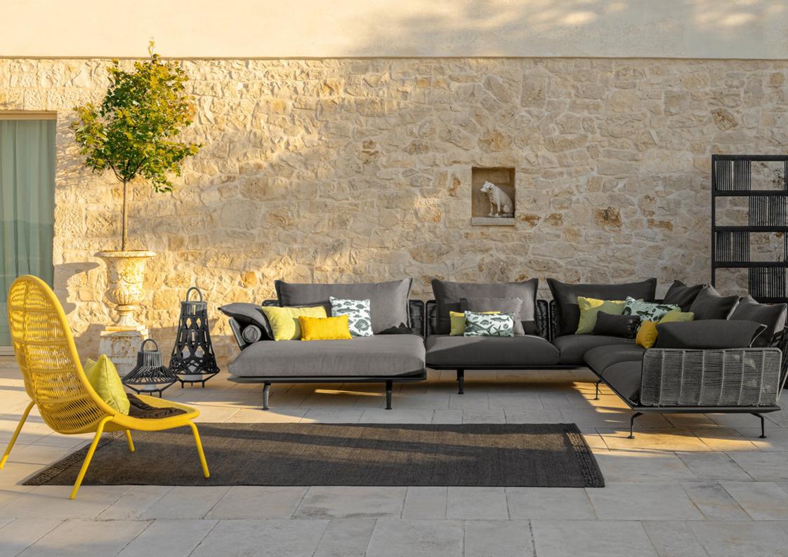 materials: die-cast aluminum, synthetic rope, outdoor fabrics + quick dry foam
