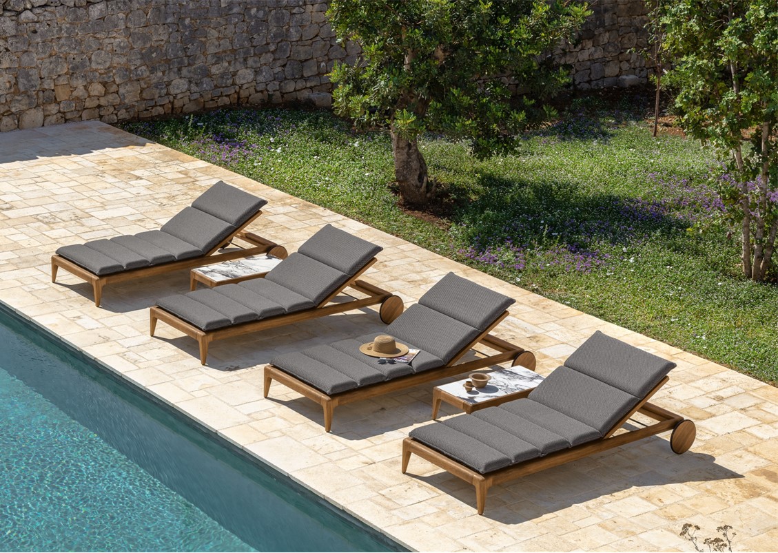 materials: smoke teak, synthetic rope, outdoor fabrics + quick dry foam