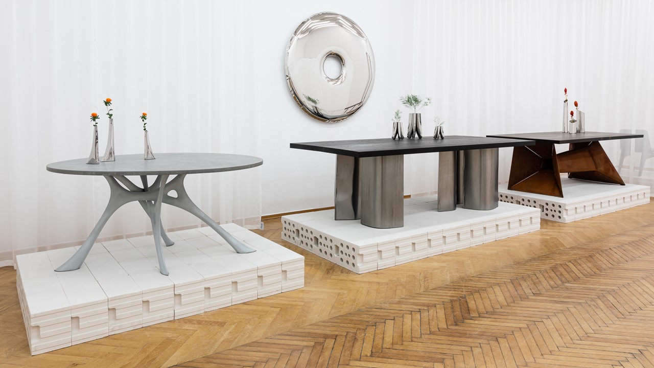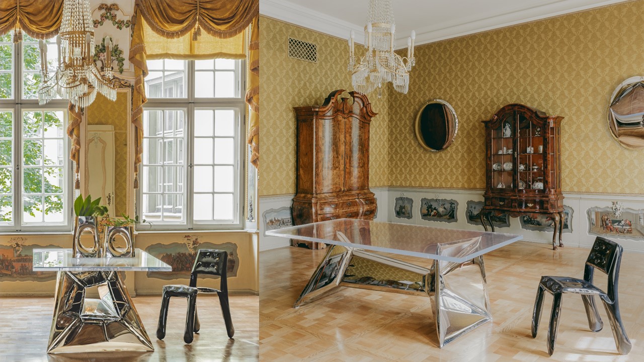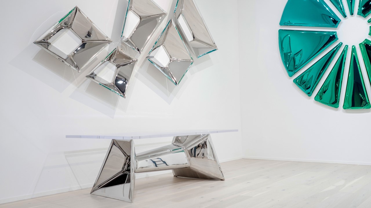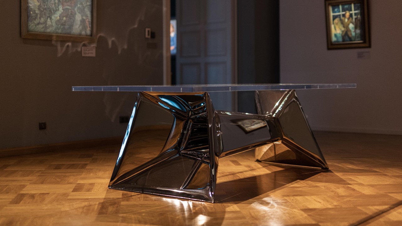 The Crystals Dining Table is functional sculptural art—an architectural statement that transforms any space. Inspired by the facets of a diamond, its reflective metal base multiplies light and form, creating a mesmerizing play of symmetry and depth. Both table and art piece, it frames the room with kaleidoscopic impressions, where surfaces echo one another and geometry becomes performance. Available in multiple top and base options, the Crystals Dining Table turns dining into an immersive visual experience.