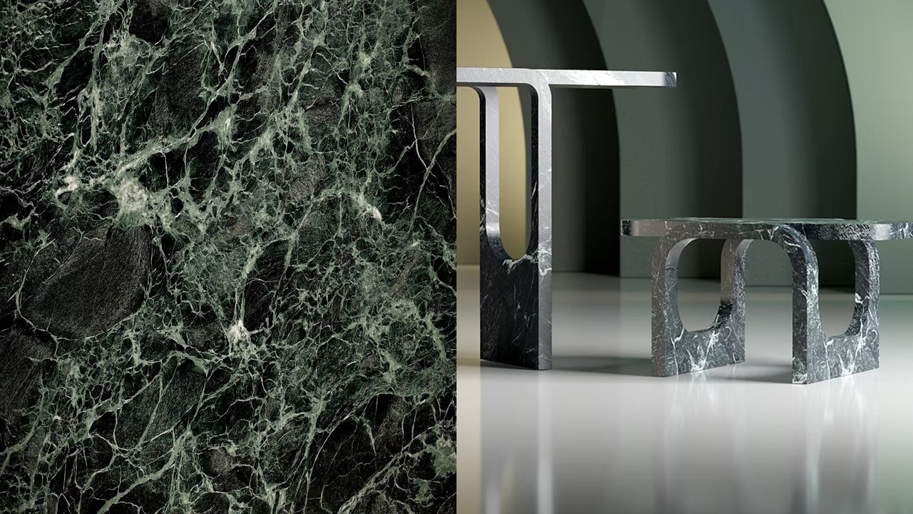 stone finishes: verde notte, Calacatta macchia vecchia, Calacatta viola, rosa deserto