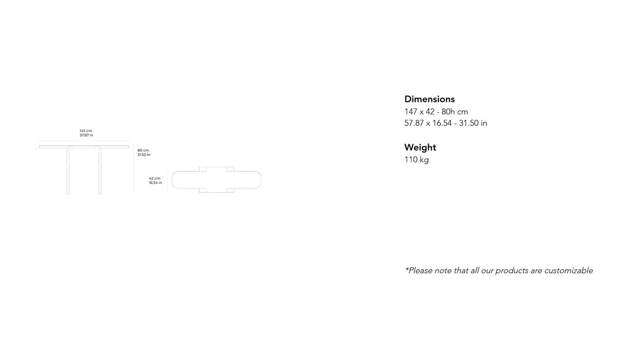 The Cut & Fold Stone Console is constructed by cutting the selected block with a single-blade, thus bringing it to its maximum dimensions. “Cutting and folding means creating a whole new element through the sequence of two simple actions. Starting from a rectangular slab, the cutting action draws new geometries on the plane by separating different areas which, however, always remain partially attached through some appendages. The second action consists of achieving the imaginary bending of a material that is impossible to fold, the stone. The top of the console remains parallel to the ground and is still joined to two sets of legs laterally. While these are doubled from the table top until reaching the perpendicularity with it. The result is an object with extreme sinuosity and lightness capable of involving the user for the conceptual strength necessary to fold the non-foldable.”