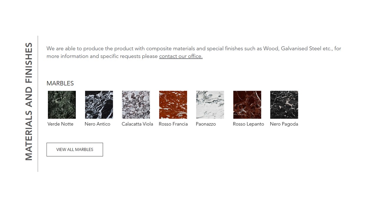 other stone options: travertina rossso, bianco perlino, Carrara, ebano, grigio carnicov, pietra lavica nera, picasso green, salome, verde notte, arabescato grigio orobico, emperador brown, sahara noir, nero marquinia