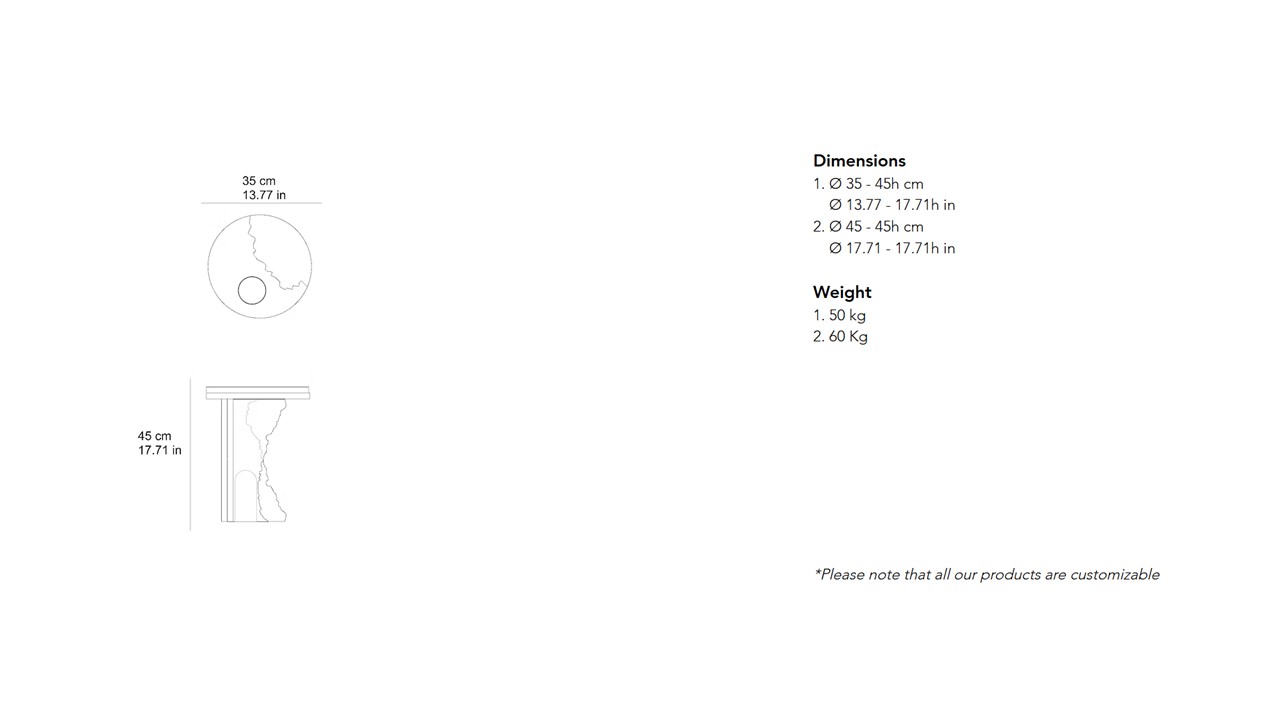 The Fallen Empire Side Table, designed by Lara Bohinc, extends the collection’s exploration of time, erosion, and architectural memory into a more focused, intimate form. Conceived as a fragment of a larger whole, its sculptural geometry evokes the remnants of ancient structures—reduced, refined, and reimagined for contemporary interiors. Carved from solid marble, the piece reveals a dynamic interplay of jagged edges and softened planes—referencing the irregular beauty of ruins while maintaining a disciplined, modern silhouette. Subtle geometric cues—arches, apertures, and voids—emerge within the form, creating moments of depth, shadow, and visual tension. Though compact in scale, the table carries a monolithic weight—its presence defined not by size, but by density, material, and sculptural clarity. The natural veining and tonal variation of the stone further reinforce its singularity, ensuring each piece exists as a one-of-a-kind expression of material and form. More than a side table, Fallen Empire functions as a spatial accent—an object that introduces history, texture, and quiet narrative into the room.