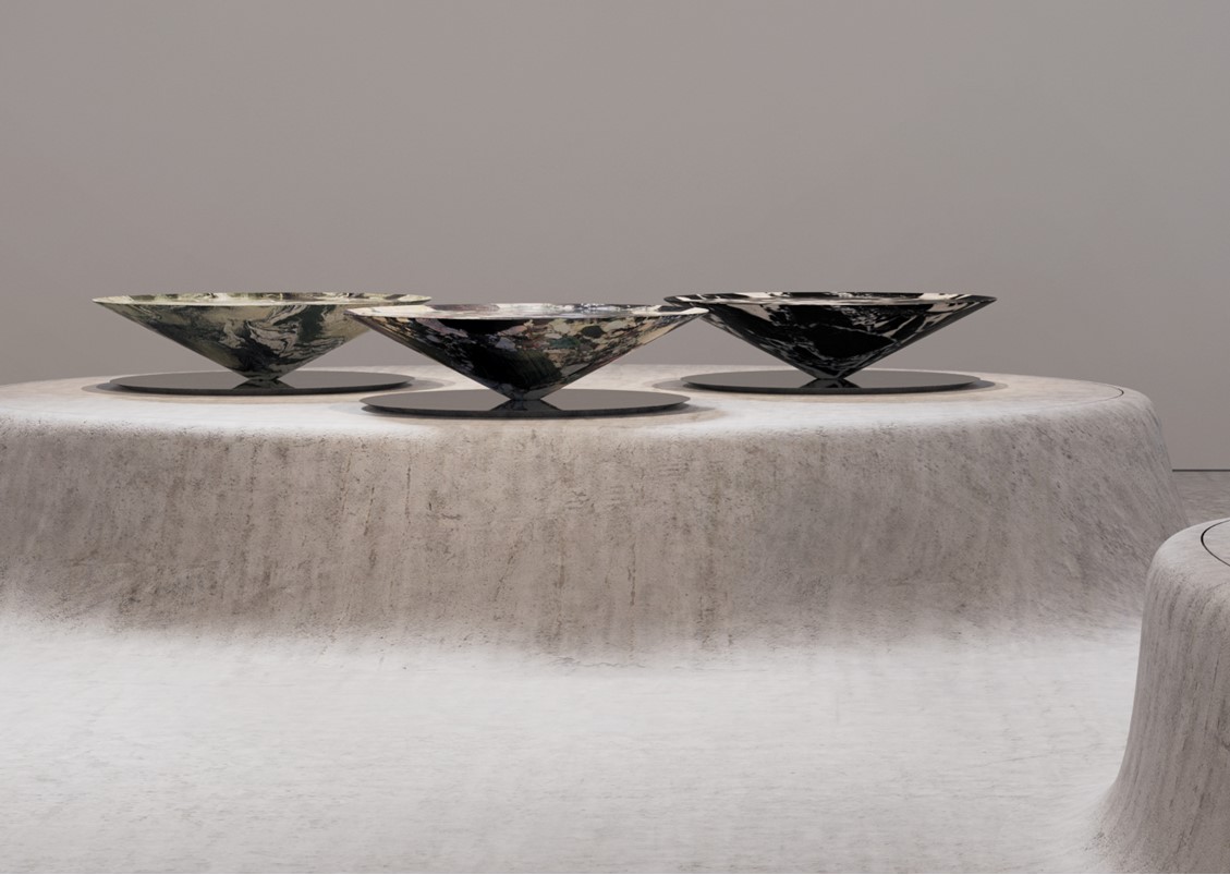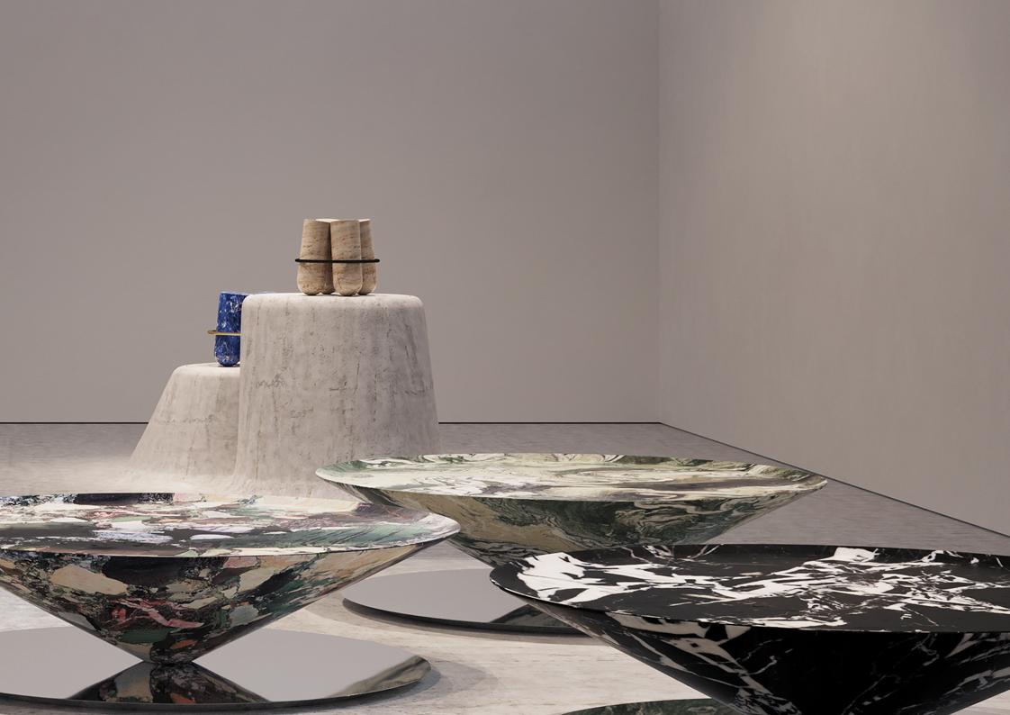materials: lacquered steel + specialty stone