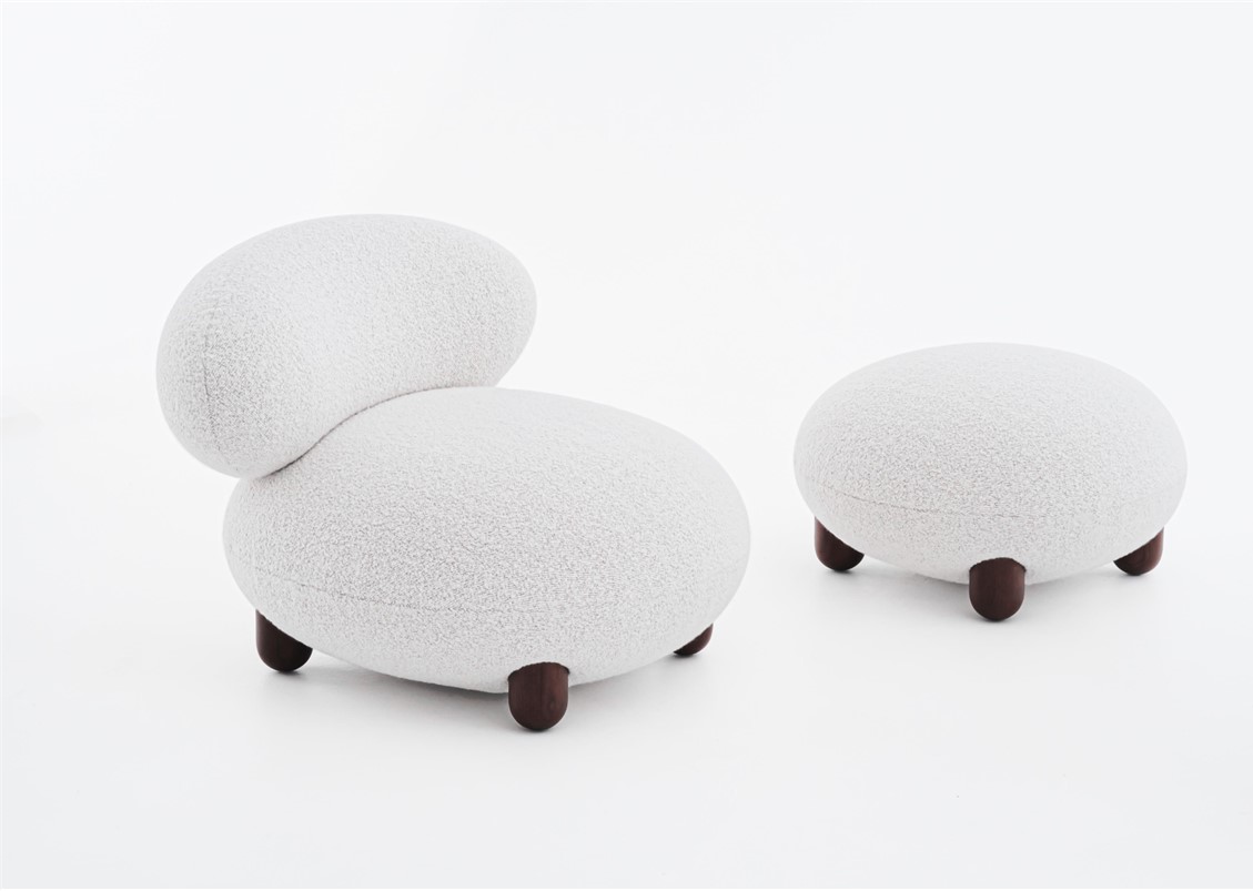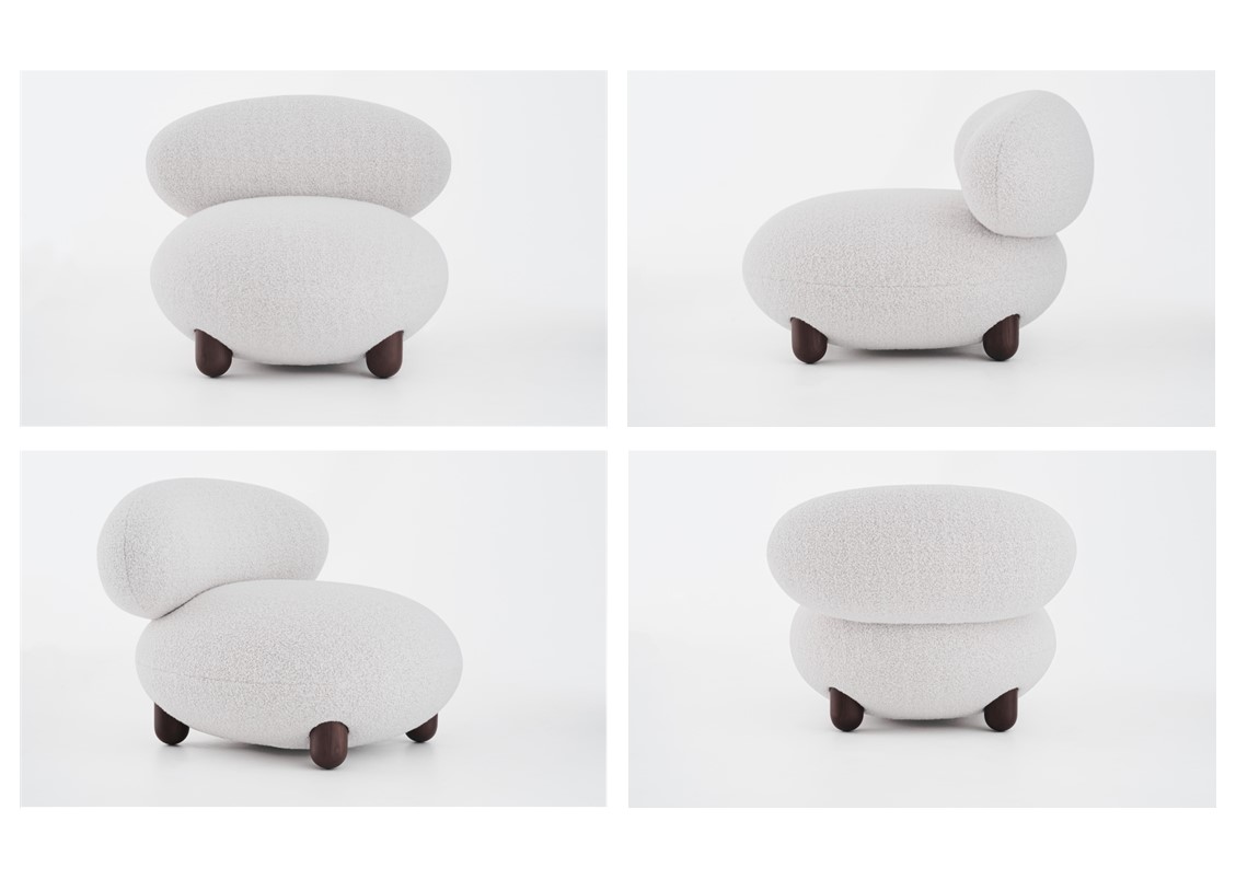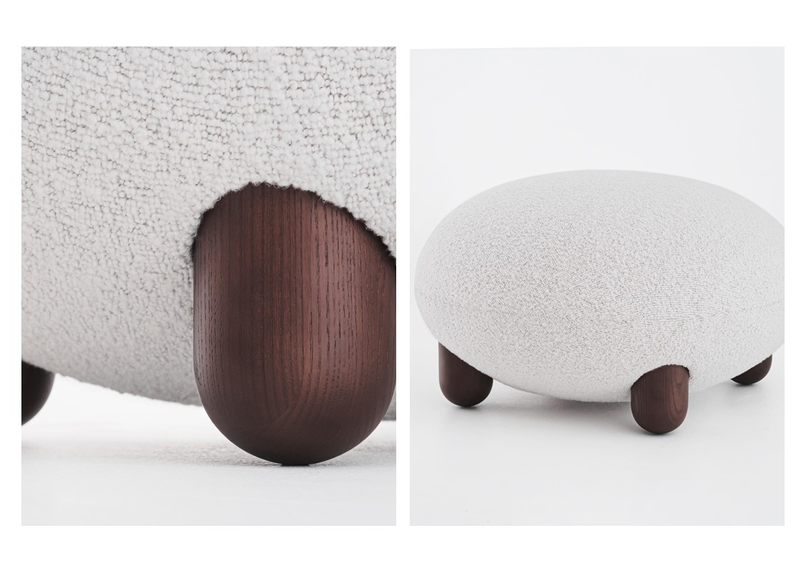 The “Flock” collection embodies the idea that home should be a haven of comfort, a sanctuary, and a gathering place adorned with personalized, character-rich, and visually striking statement objects. The name “Flock” reflects its role as a tranquil oasis and central meeting space within the home, where soft, voluptuous forms, natural materials, and pleasing tactile surfaces create an ambiance of warmth and cocooning. Available in several fabrics + wood combinations
