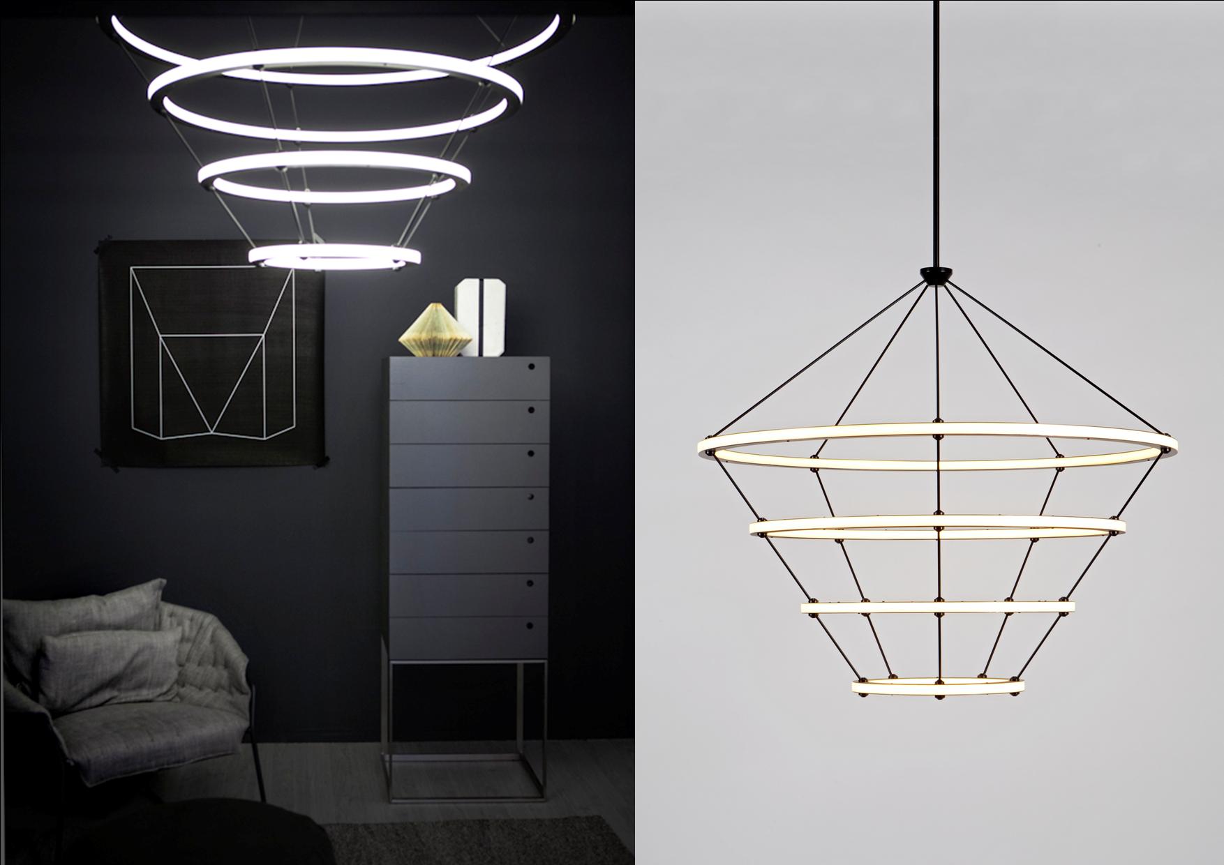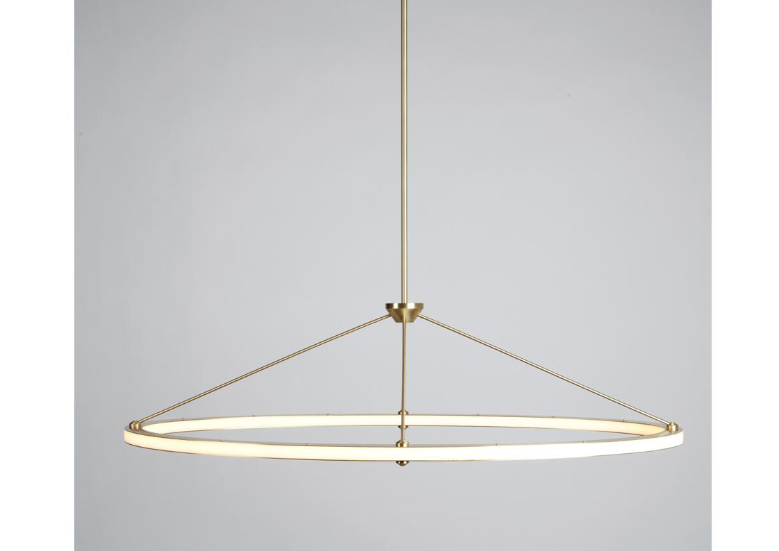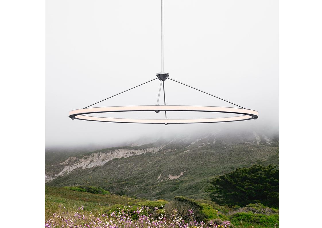 Paul Loebach envisioned the Halo series for Roll & Hill as an exercise in the graceful use of energy-efficient LED technology. The Halo collection, which includes a chandelier, a pendant and a wall sconce, is distinguished by its use of concentric metal rings, clean lines, hand-finished metal surfaces, and the unique adaptability of LED illumination.