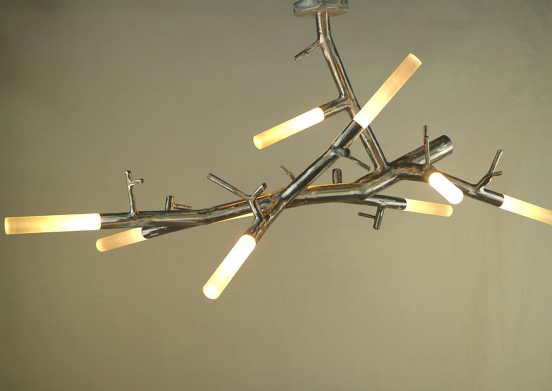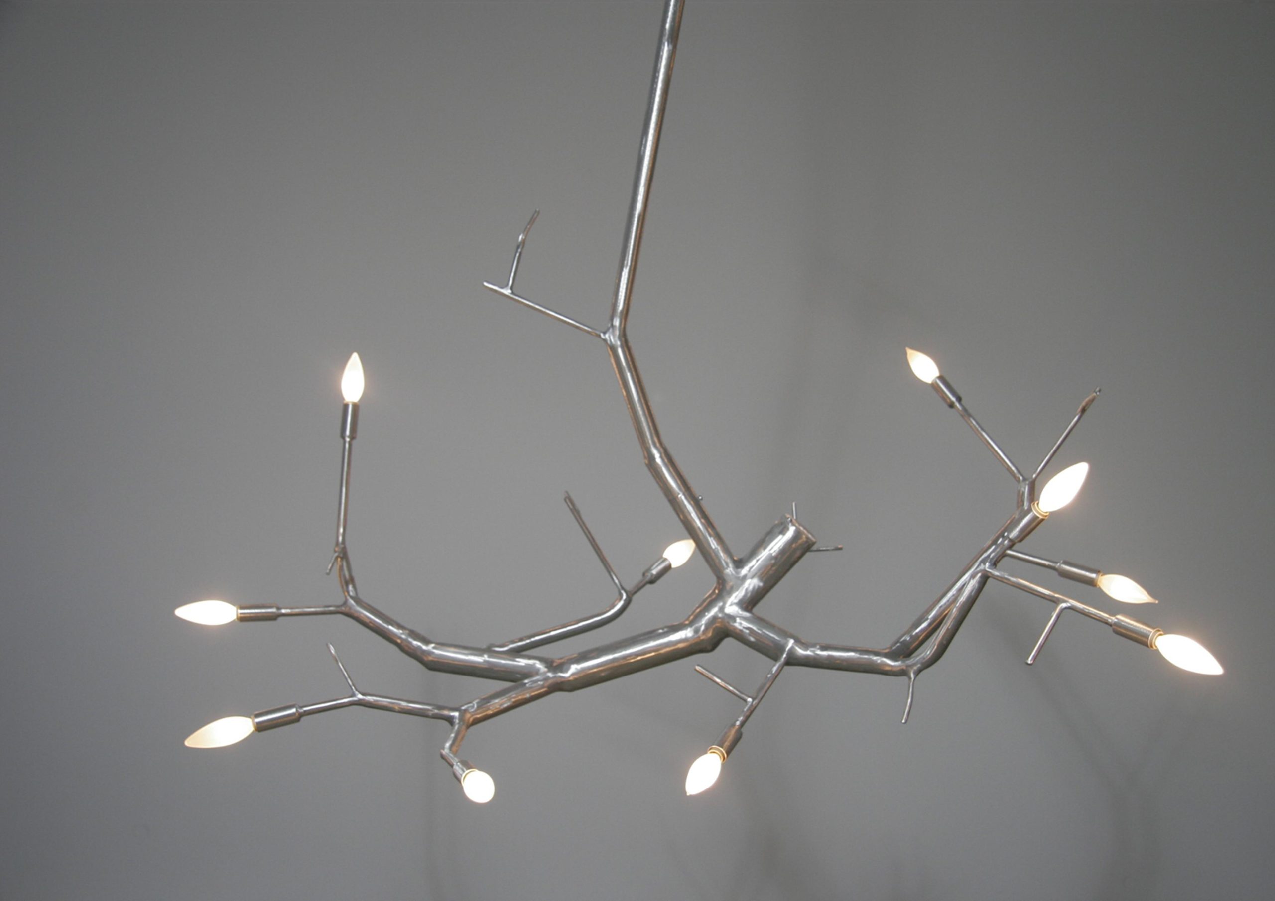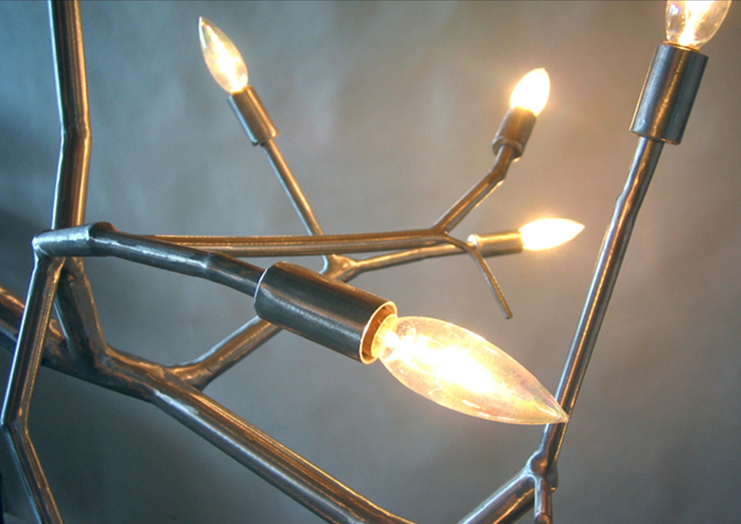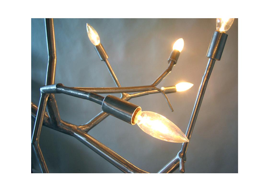 Part of the DL Modern Masters Series – Industry Branch Lighting is a study in reinterpreting tree and wood motifs through metal. A hand-made, artistic endeavor of re-purposing industrial materials that have been cast aside resulting in the transformation of junk and wire into a body of work that blends playful levity with enchanting elegance. Each industrial yet organic masterpiece is unique and made by custom commission only. Several styles, sizes, and finishes tailored to your imagination. When you need a signature statement piece look no further.