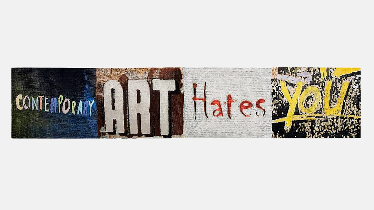 JOHN WATERS Contemporary Art Hates You 2009 2025 – Iconic filmmaker, writer, and artist—is celebrated for his subversive, razor-sharp take on American culture. Known for cult classics like Pink Flamingos, Female Trouble, and Hairspray, Waters has consistently challenged artistic norms with his irreverent wit and fearless creativity. His visual art extends this same spirit, using found images, wordplay, and cultural satire to blur the boundaries between high and low art. Henzel Studio debuted his limited-edition rug Contemporary Art Hates You (2009/2025) at the PDC Design Gallery in conjunction with Frieze—an artwork that disrupts contemporary art’s self-seriousness with Waters’ trademark humor. Waters’ work has been exhibited at leading institutions including the Baltimore Museum of Art, Academy Museum (LA), Sprüth Magers, Marianne Boesky Gallery, and the Wexner Center for the Arts.
