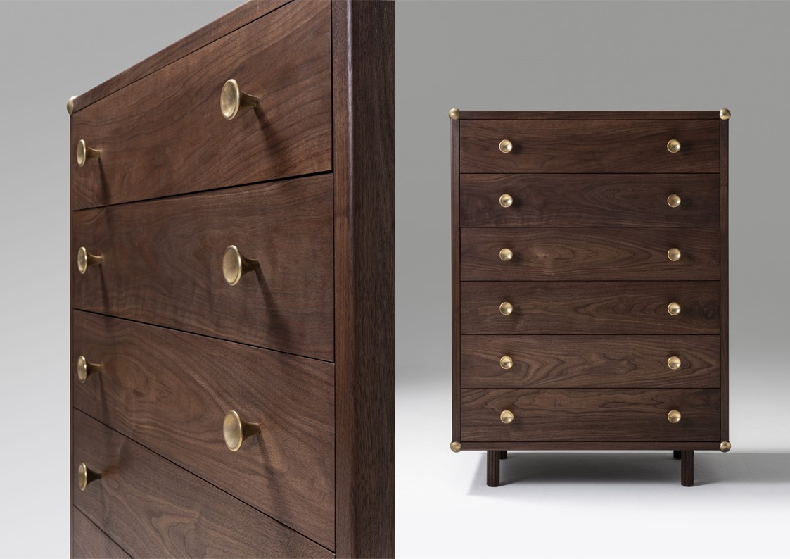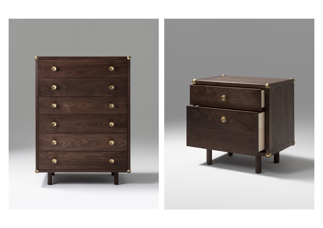 Lafayette is a bedroom suite designed by award-winning designer Jason Miller with a reference to steamer trunks and campaign furniture, the Lafayette cabinets carry on in the same tradition of encapsulating personal items for safe-keeping.
