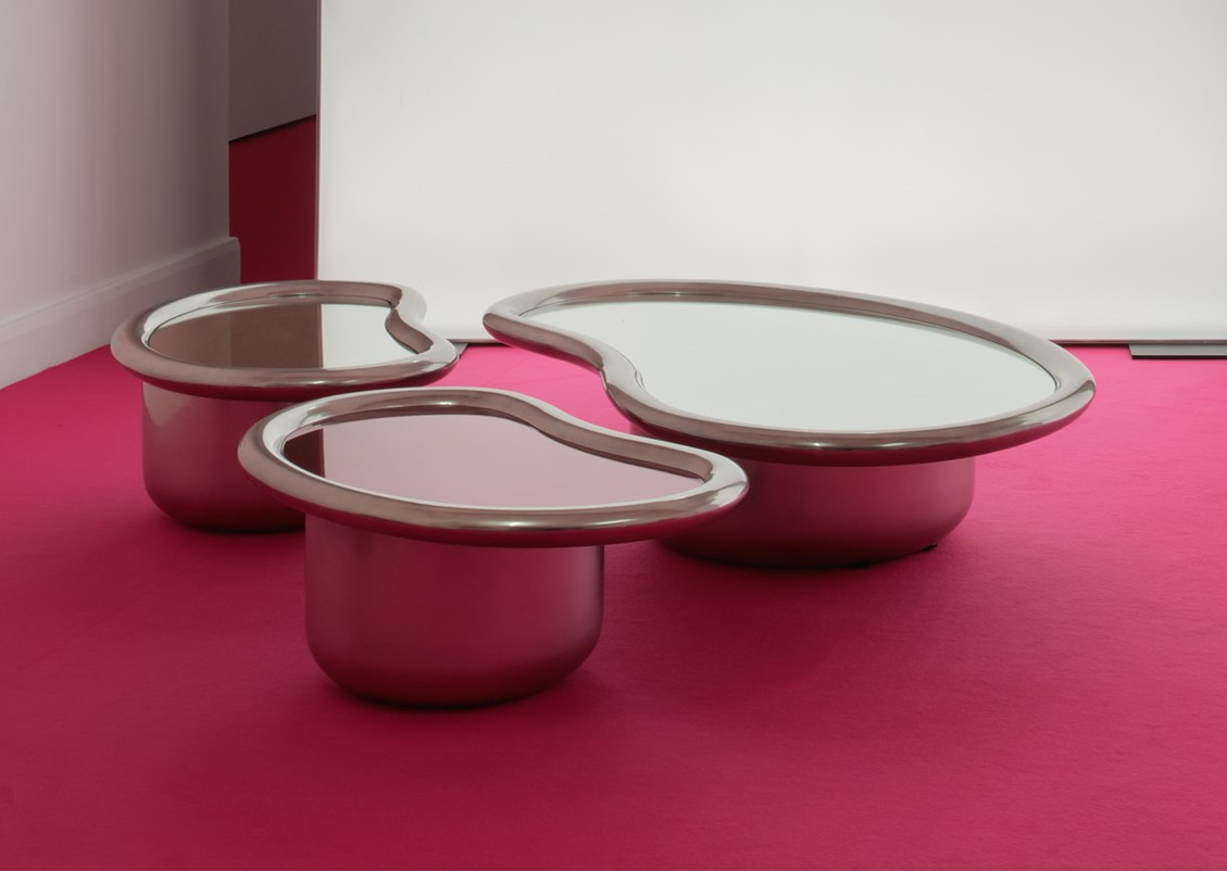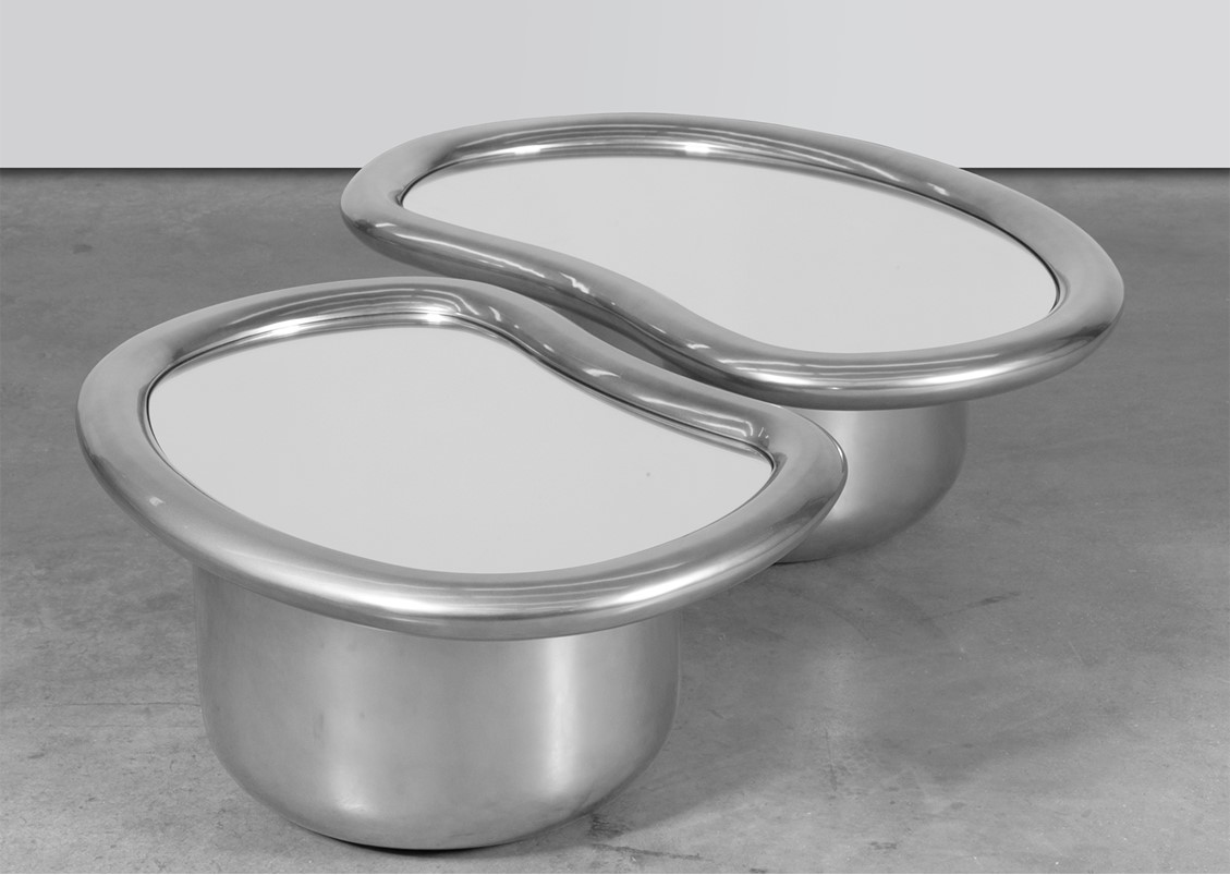 The limited edition Laghi Coffee Tables Silver is an artistic take on the Laghi Series. Inspired by the surreal and unexpected shapes of Erwin Wurm’s fascinating works and the pristine, futuristic aesthetics of Japanese illustrator Hajime Sorayama, Laghi Silver features inflated forms and chrome finishes. On their own or as part of a set, Laghi Coffee Tables are a unique but functional addition to any space.