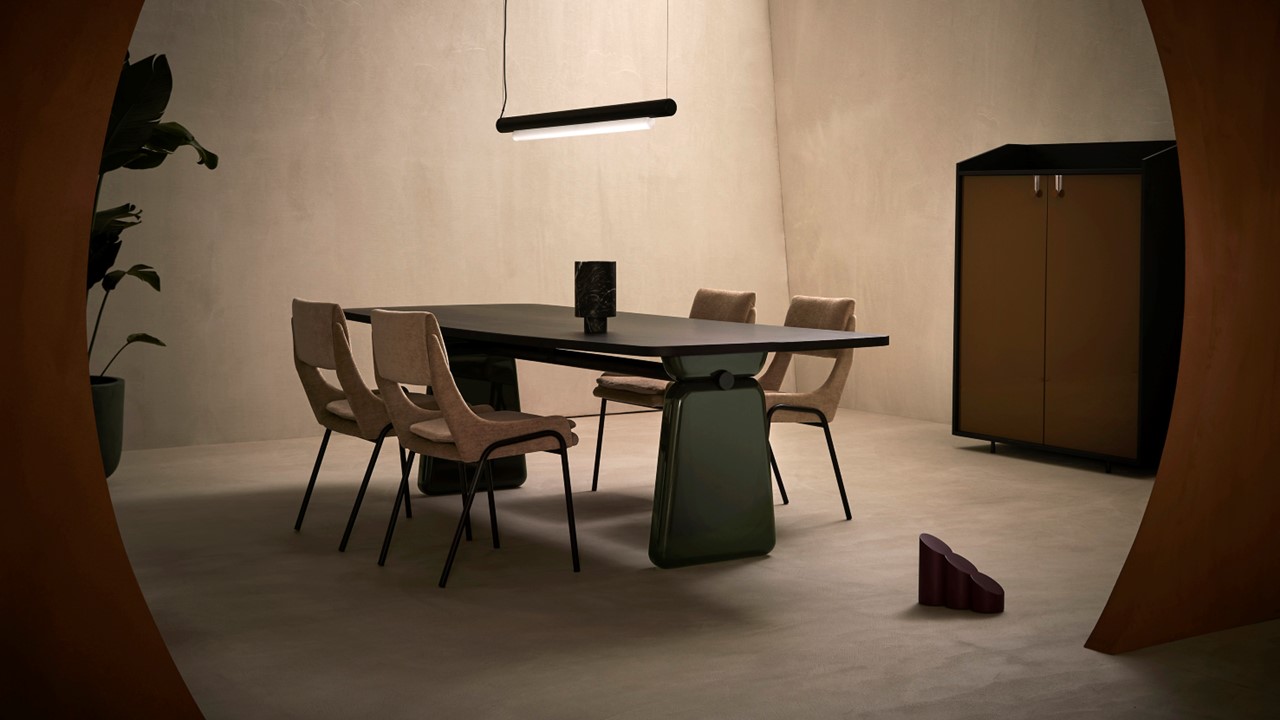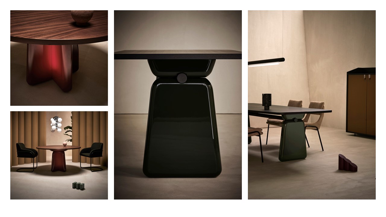 Monumental yet refined, the Litho Dining Table commands attention through its sculptural base—a composition of geometric forms with an almost archaic, architectural presence. Its bold silhouette exudes quiet strength and timeless poise, grounding the space with a sense of permanence and artful balance. A cylindrical crossbar beneath the top introduces a dynamic visual rhythm—an understated gesture that’s “just a detail, yet much more than a detail.” With a range of customizable finishes for both the rectangular top and base, Litho celebrates individual expression, harmonizing natural materials and modern design sensibility. Ideal for dining, conference, or gallery-style settings, it stands as both furniture and sculpture—a true statement of enduring craftsmanship.