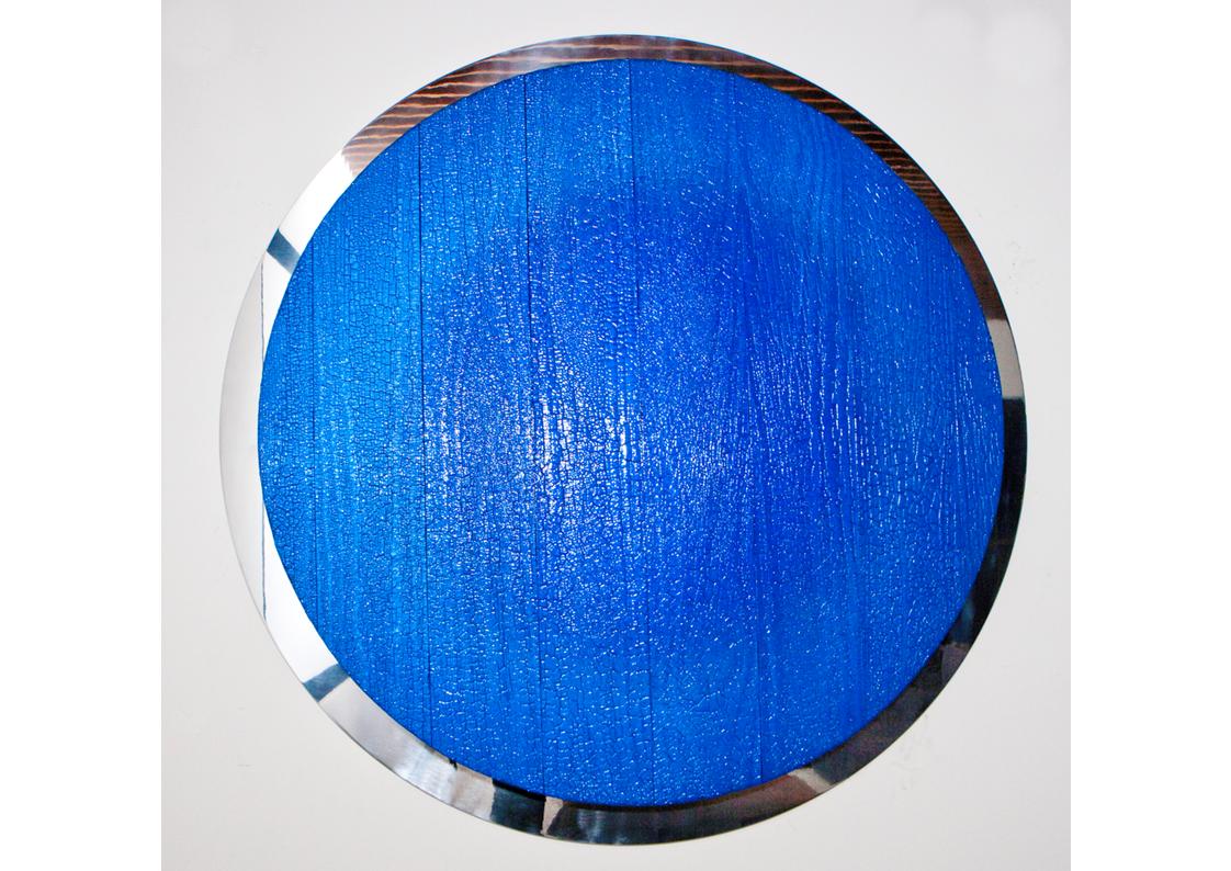 LMC N 63 series by Zak Ostrowski explores cosmic colors through reflections, layering, and burning. Each individual and unique work is constructed with a controlled combination of Shou-sugi ban, auto paint, candy flake, polished stainless steel + polished aluminum