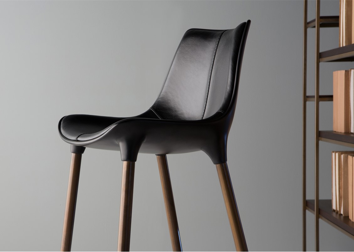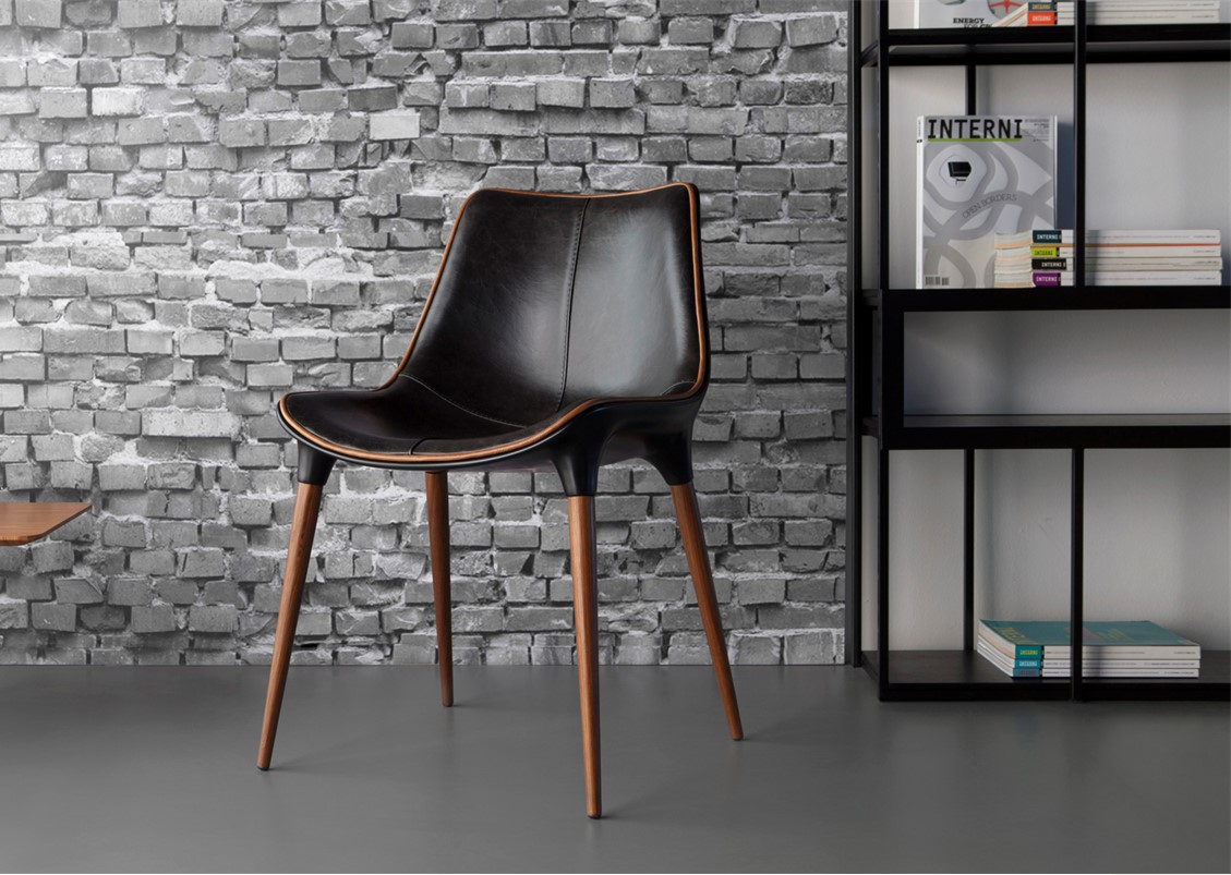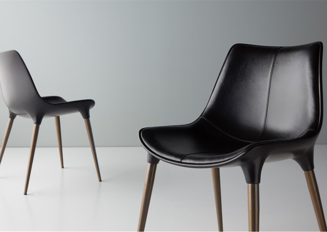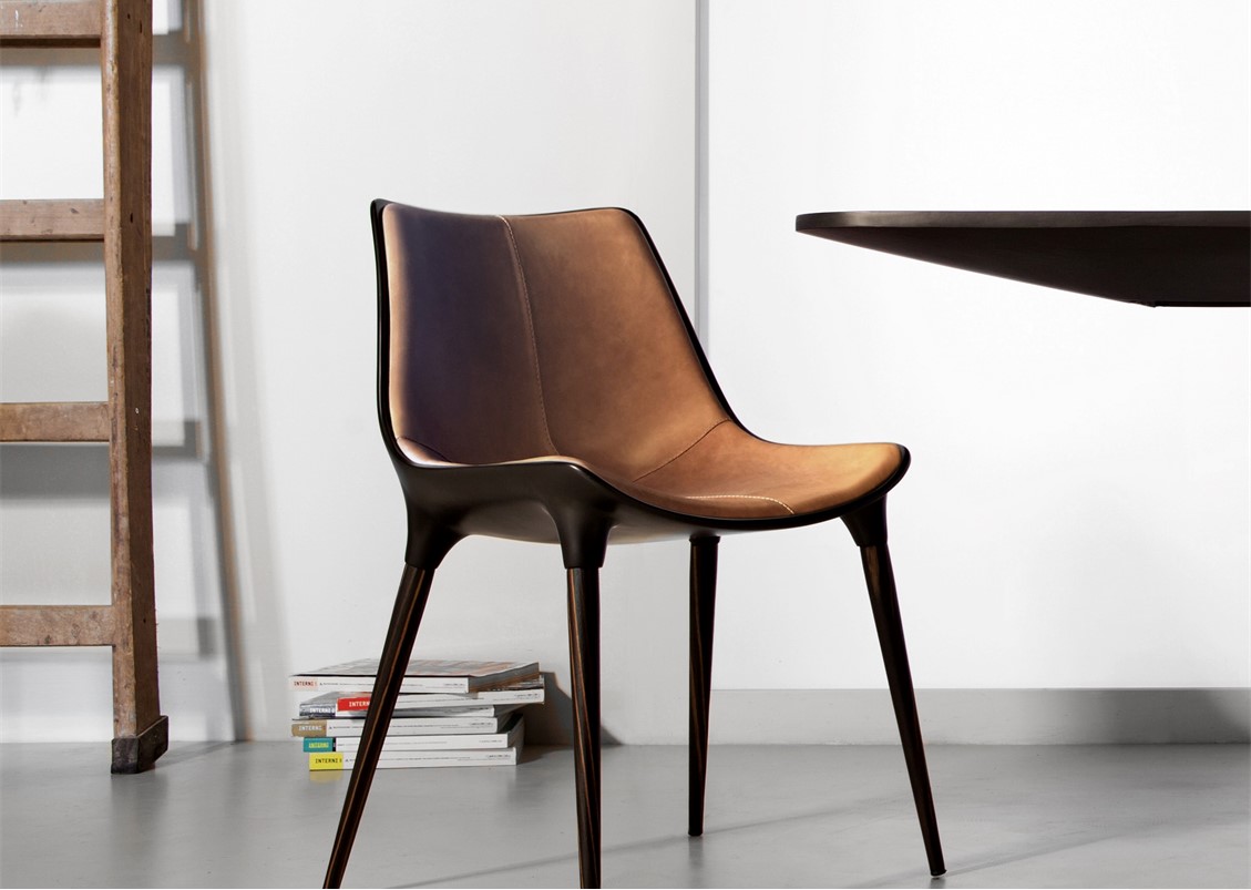 The Luna Dining Chair has an ergonomic scoop seat that cradles you – a comfortable, modern choice for hanging out in style. Available with legs in painted metal or wood veneer with several leather upholstery options – with or without piping detail (please inquire)