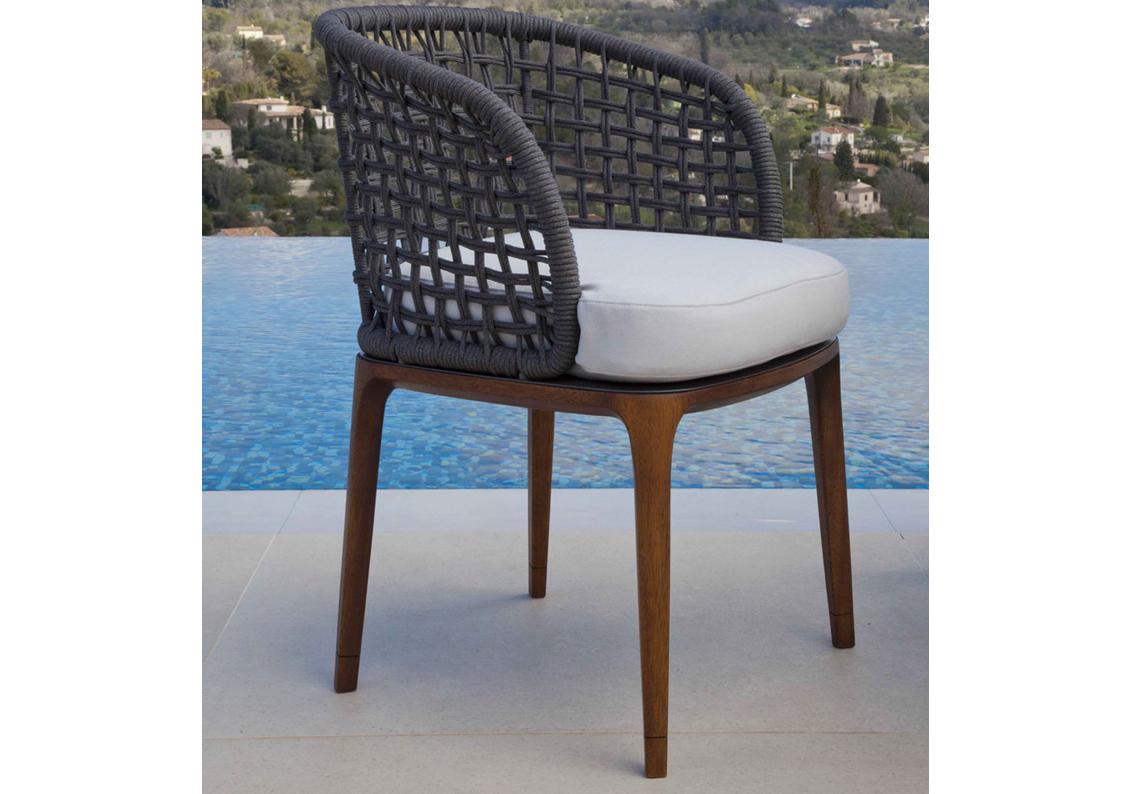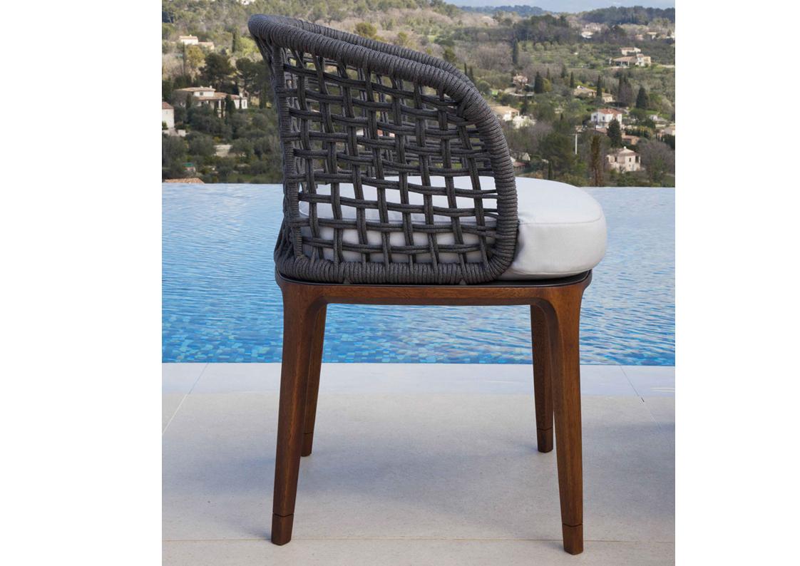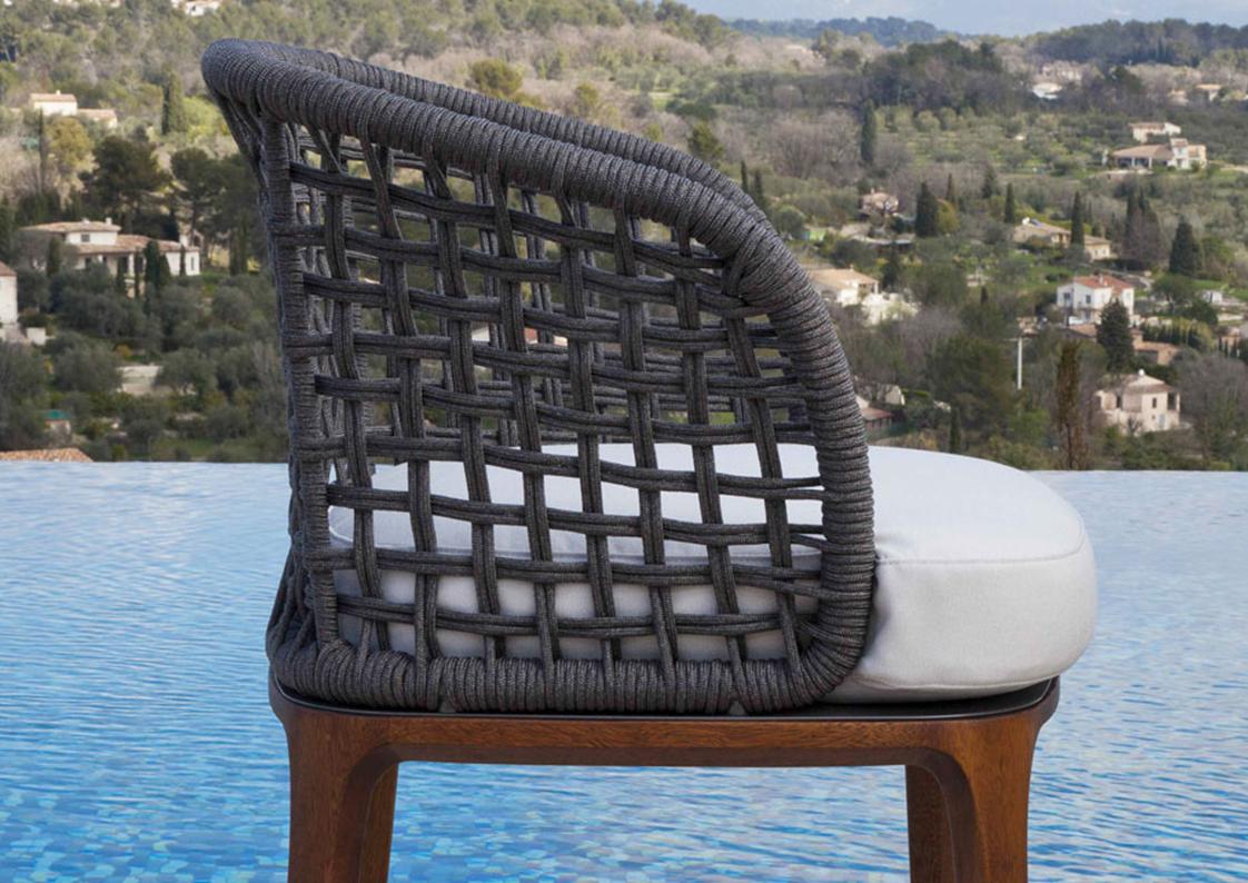 materials: Iroko wood, synthetic rope, outdoor fabrics + quick dry foam