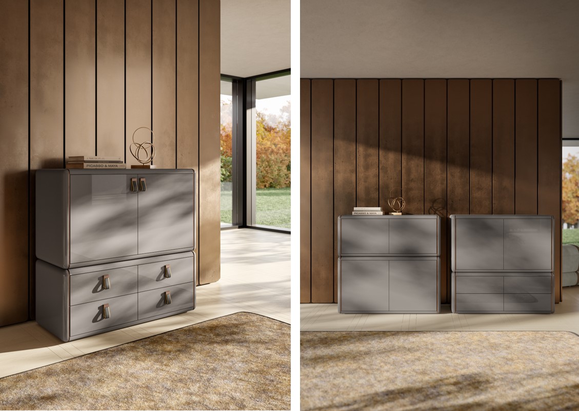 The Maggiore Bar is a modular storage system designed to elegantly adapt to different areas of the home, from living spaces to entryways. It can be configured both in width and height, offering maximum design freedom through a wide range of elements, finishes, and layout options. Whether styled as a sideboard or a credenza, Maggiore includes closed compartments, drawers, open shelving, and bookcase units to suit functional and aesthetic needs. Optional features such as a marble inlay on the top or integrated interior lighting add a refined touch, enhancing the perception of materials and volumes. Maggiore is a versatile and sophisticated system that expresses a contemporary design language defined by balance, attention to detail, and personalization.