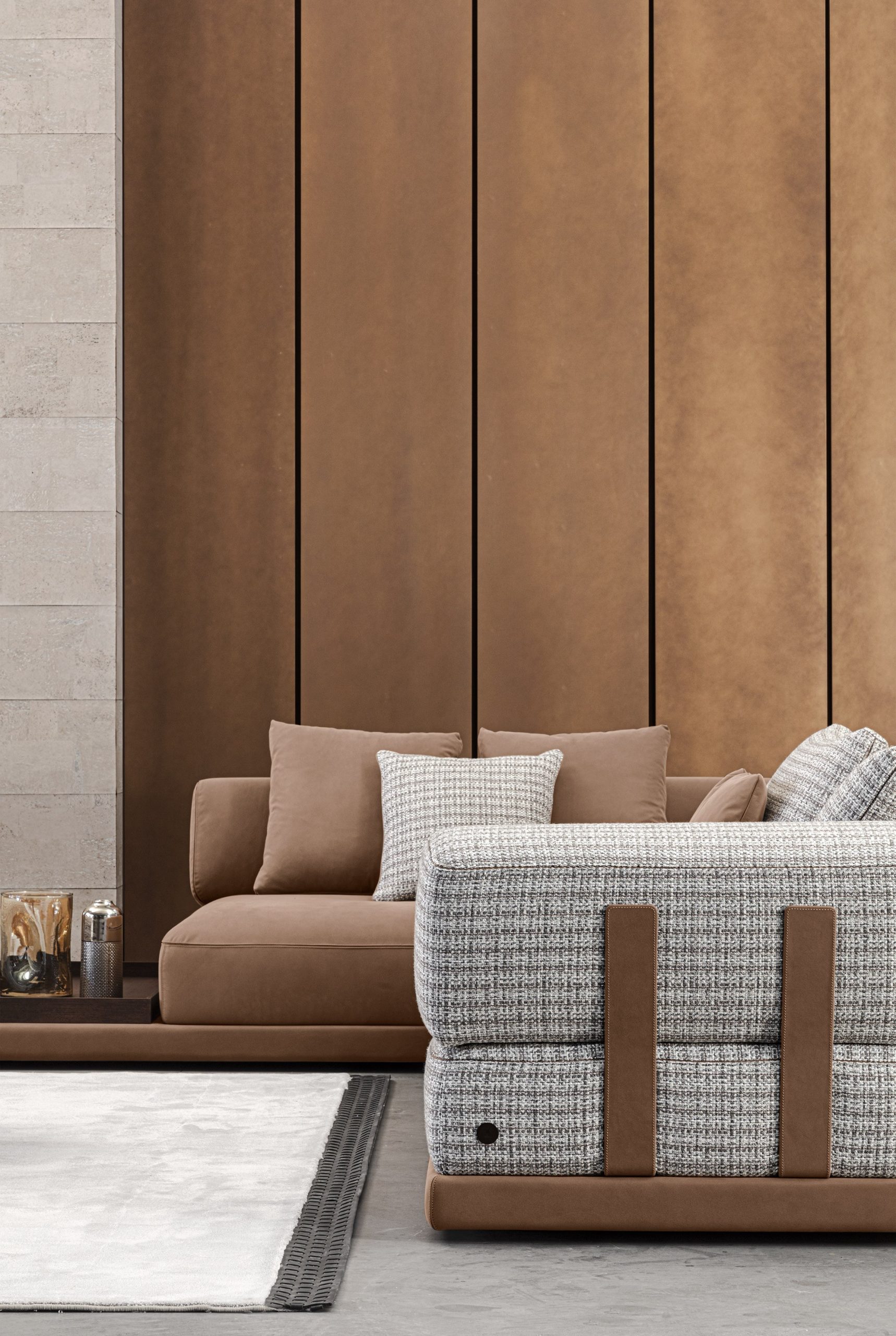 materials: Canaletto walnut, metal, Italian fabrics + leathers