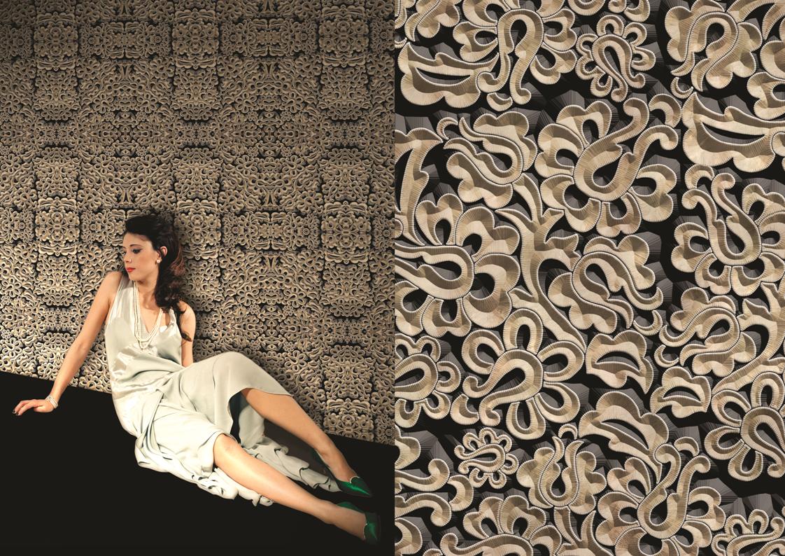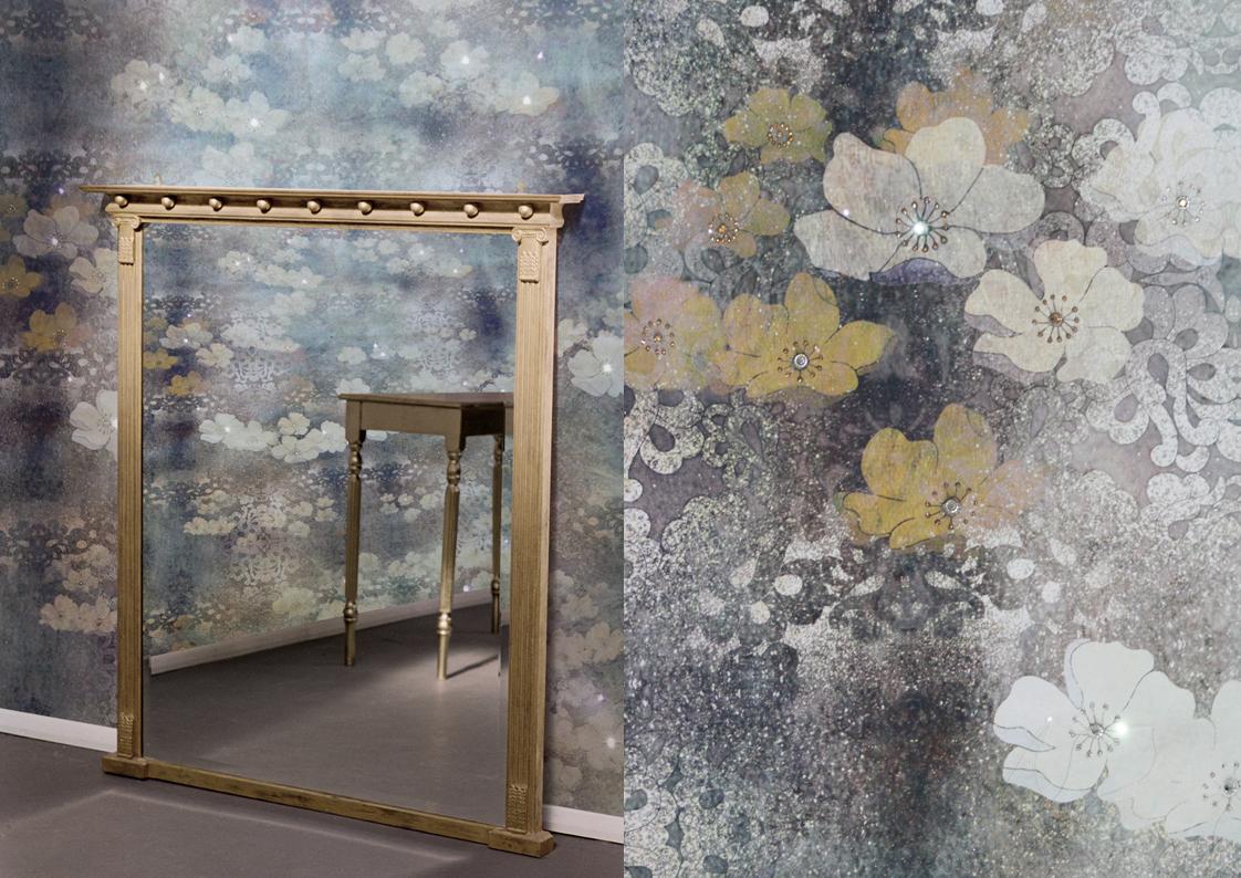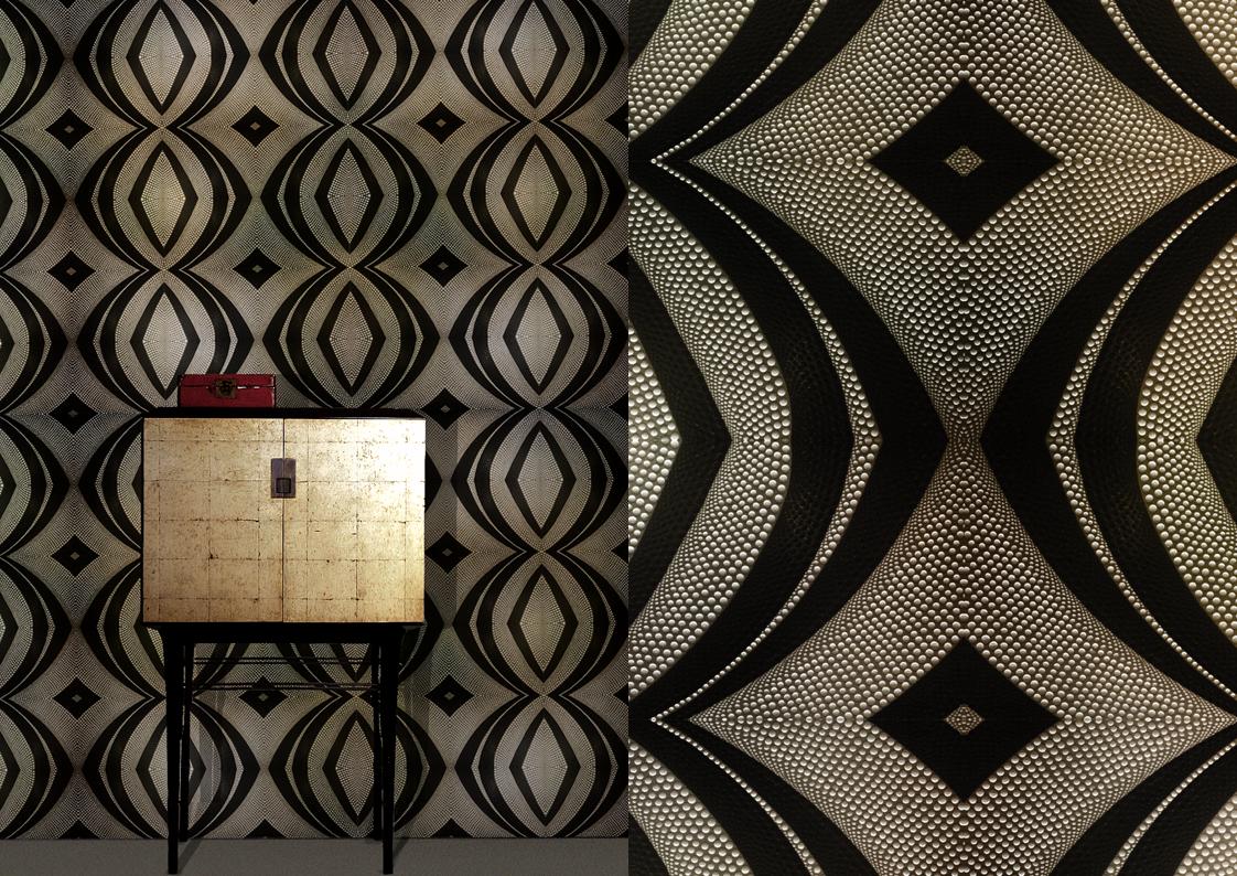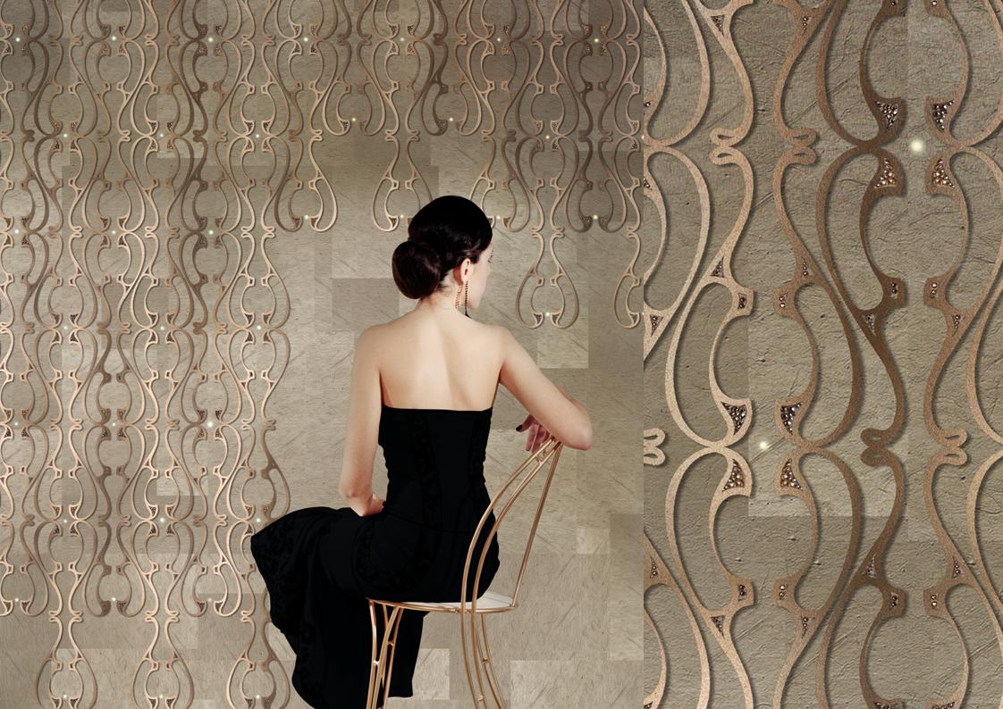 The Meystyle Swarovski Crystal + LED Wallpaper Collection is an elegant and opulent wallcovering option that incorporates the use of Swarovski crystal and embedded LED lights to create a spectacular stand-out wall installation. The Abyss is inspired by the journey into yourself and the perpetual world of ideas, which is behind the perceived world. A single thought is both an eternity and a single moment in time. This collection doesn’t concentrate on objects but rather the emotions that can be represented and evoked by color and motion within a pattern.