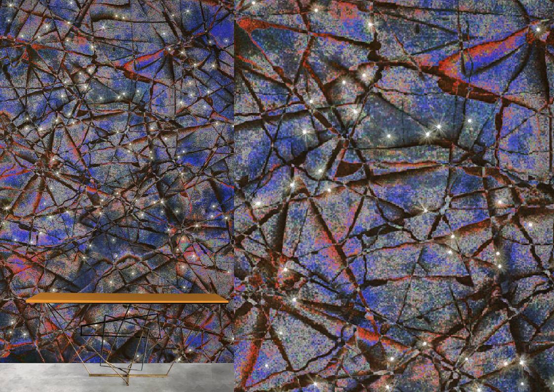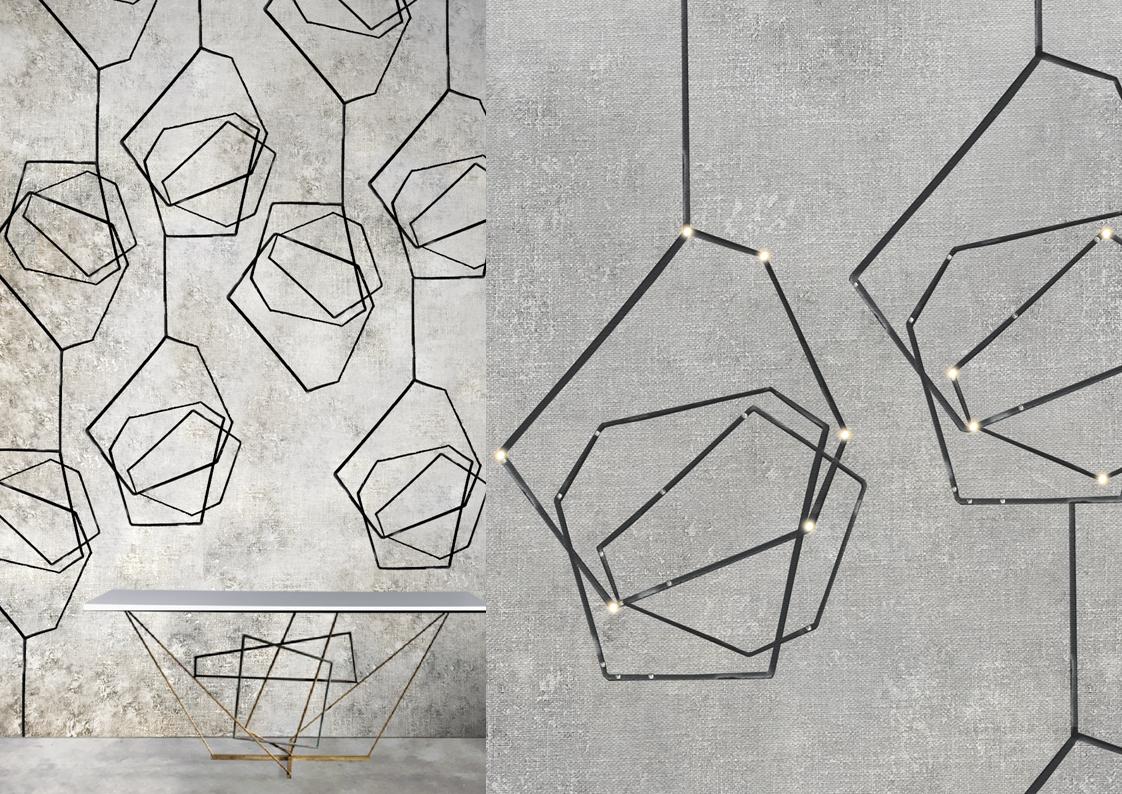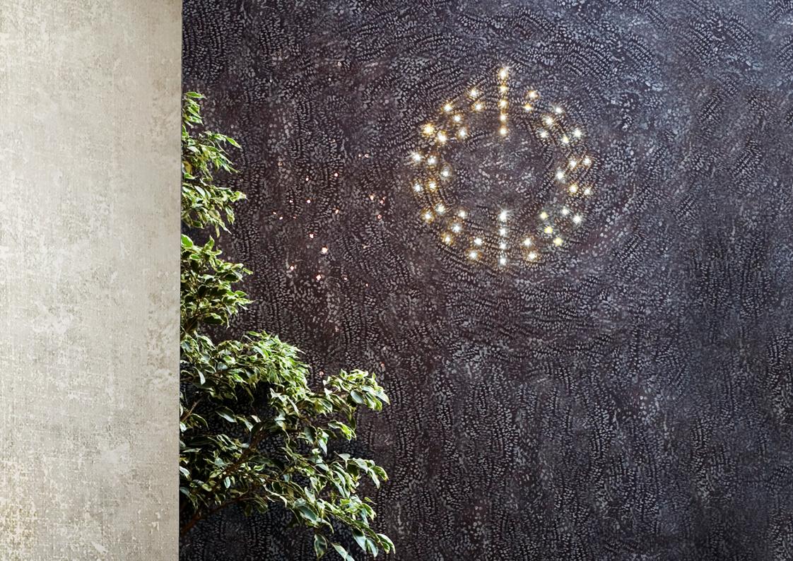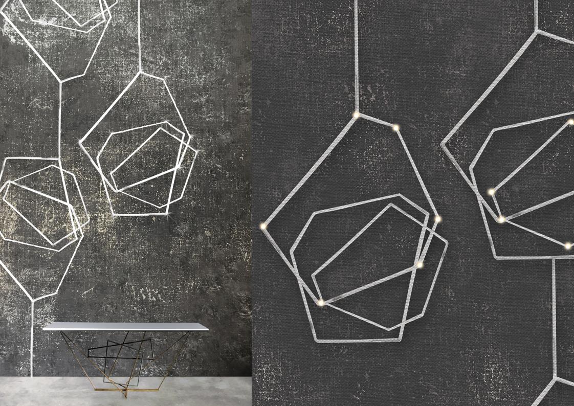 The Meystyle Swarovski Crystal + LED Wallpaper Collection is an elegant and opulent wallcovering option that incorporates the use of Swarovski crystal and embedded LED lights to create a spectacular stand-out wall installation. The Conductivity collection is a celebration of the ubiquitous yet mysterious power of electricity. The designs dig into the infinitesimal world of the atom and its scientific representation as a source of visual inspiration –  the collection echoes its fascination with nature also in its choice of materials, ranging from refined linens and cotton canvases to elegant silks. A variety of metal accents, notably electricity’s best companions enrich the natural properties of each texture with hand-painted details and gilded applications.
