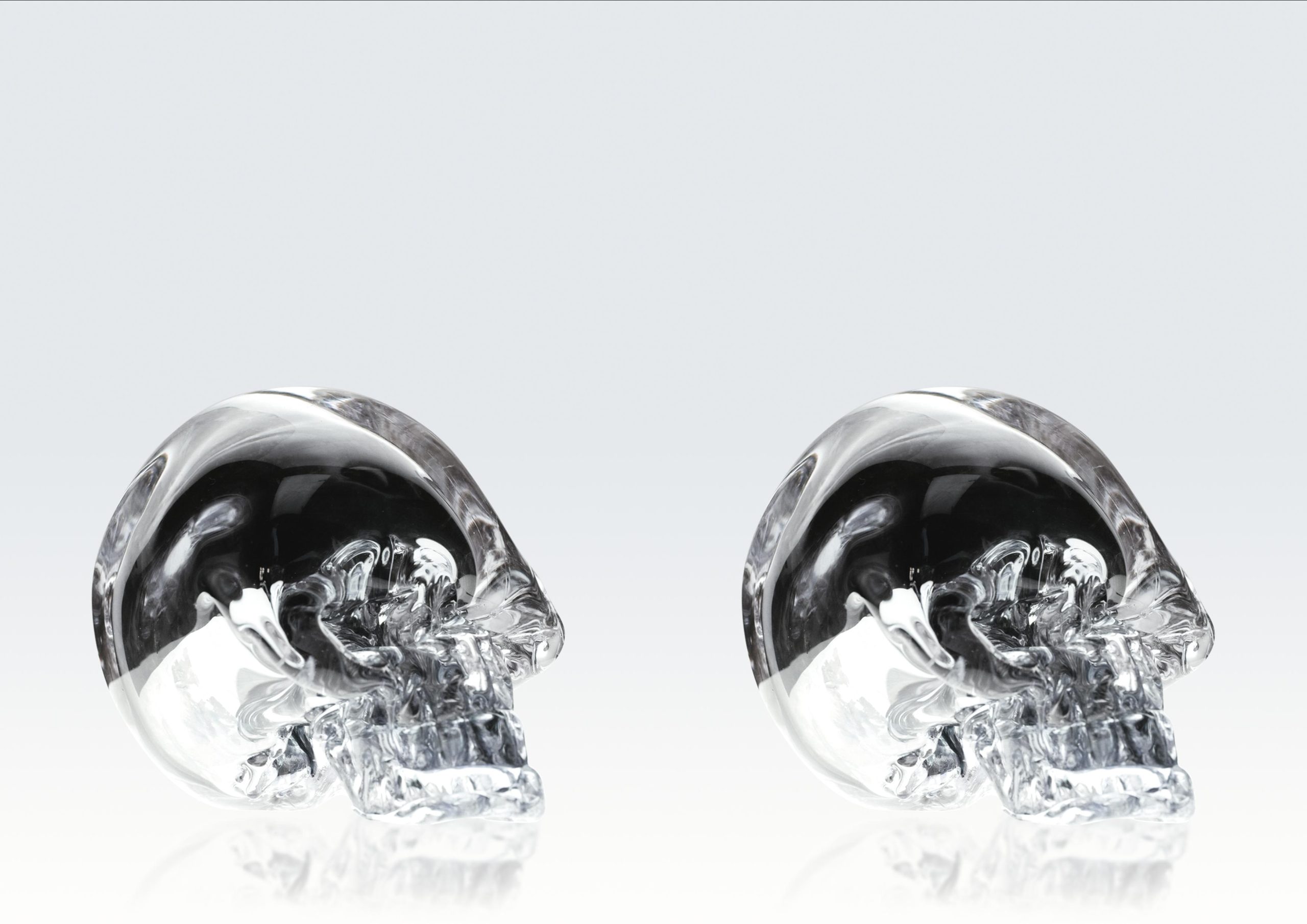 Hand sculpted by Justin Parker this piece is truly mesmerizing to see being formed, blown, poked and pulled into the shape of a skull. Adult size, approximately 8″ diameter – silvered interior.