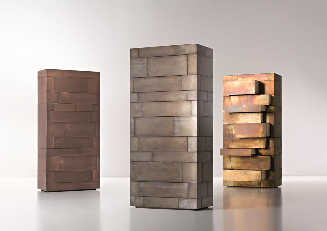 The Monolith Series is a collection of concealed, hidden, and secret storage units. Each configuration generates a different personality – an interactive object which gradually reveals itself touch by touch. Available in several sizes and proprietary specialty metal finishes.