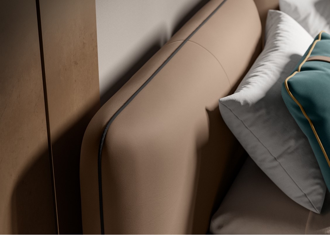 The Monza Bed combines contemporary design with comfort and refinement. Featuring a wide upholstered headboard—also available in an asymmetrical version—it adapts seamlessly to any bedroom layout. Its soft, generous frame complements the clean geometry of the headboard for a modern, elegant look. Made to order in premium fabrics or leathers, the Monza Bed offers exceptional comfort, durability, and customization—an ideal centerpiece for a stylish, inviting bedroom.