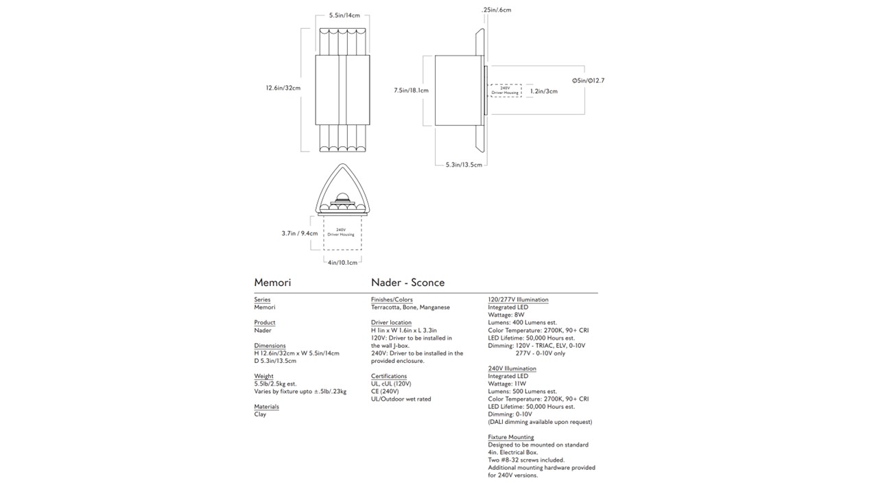 The Nader Sconce is the result of a deeply considered collaboration between French design duo Memòri Studio and master ceramicist Houda El Oman—an exploration of material, memory, and place. Each piece is hand-formed by skilled craftswomen in the Moroccan Rif Mountains, carrying forward generations of ceramic tradition through a distinctly contemporary lens. Rooted in the rhythms of the land and the intimacy of the hand, Nader embodies a quiet, sculptural presence. The surface reveals subtle irregularities and tactile depth—evidence of a process that is both intentional and inherently organic. This is lighting not as fixture, but as artifact. Cultivated within the potters’ atelier, the collection reflects a refined savoir-faire—where ancestral techniques meet modern restraint. The result is a timeless object that transcends geography: equally at home in a minimalist Marseille apartment, a sun-washed Moroccan interior, or a refined California estate. At once elemental and elevated, the Nader Sconce brings a sense of grounded luxury and cultural narrative to any space—an enduring expression of light, form, and human touch.