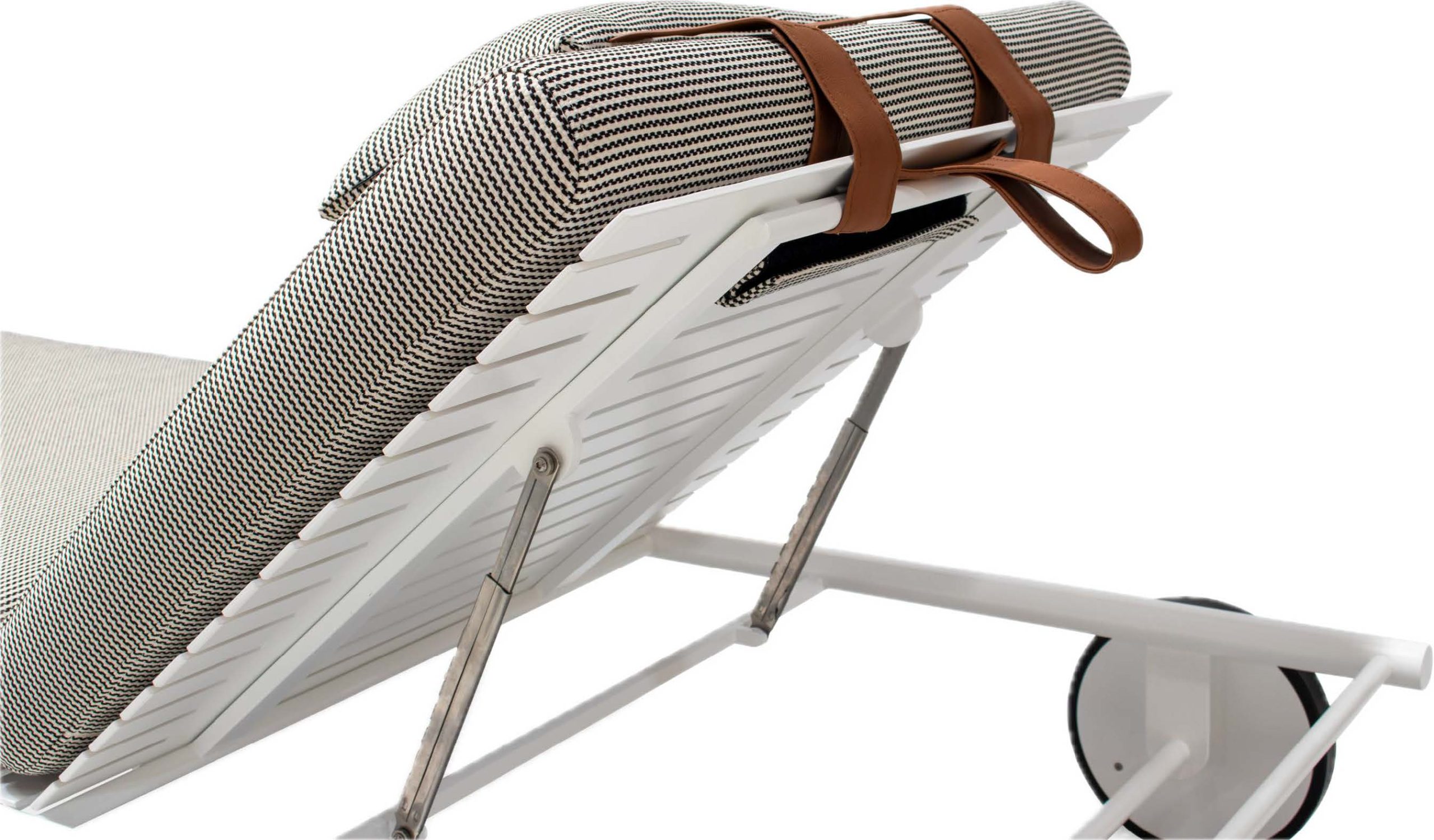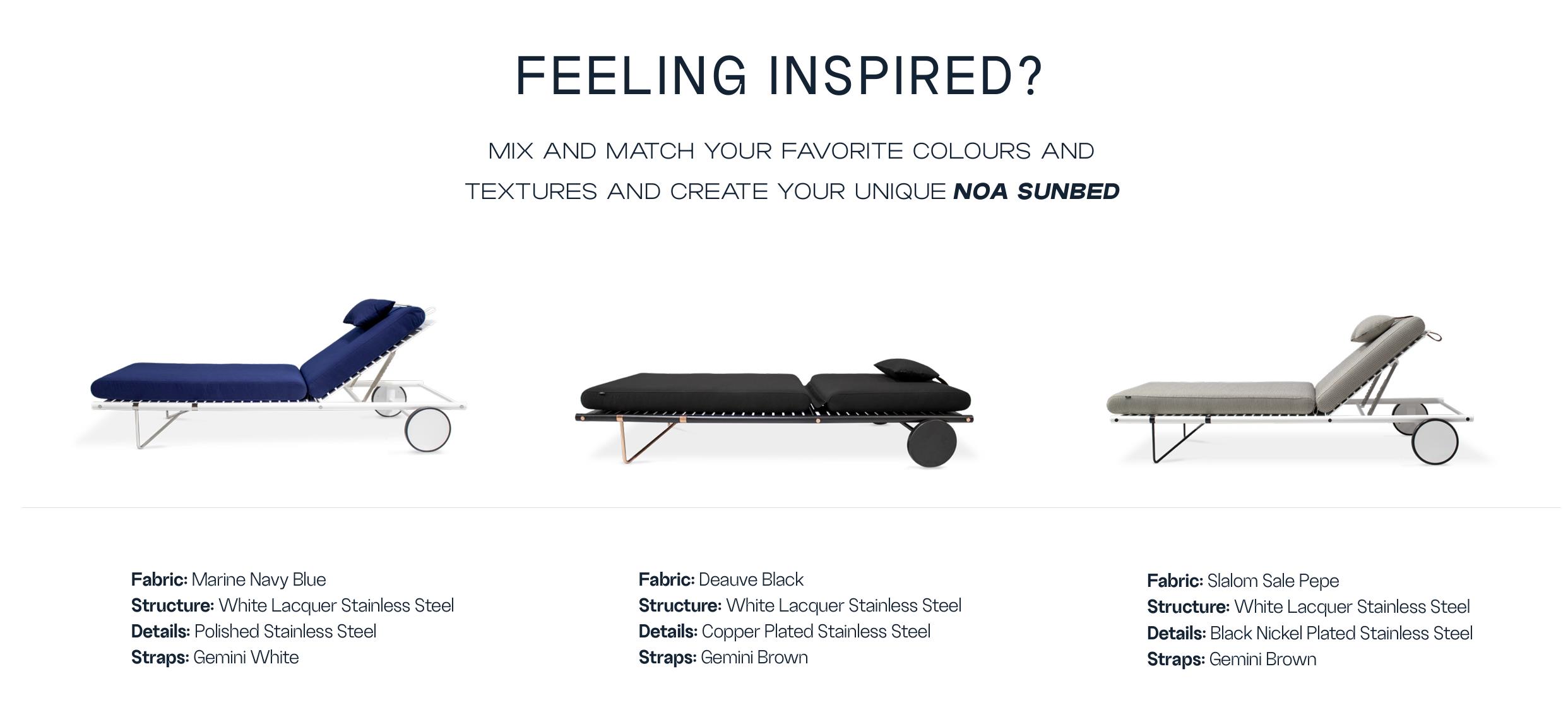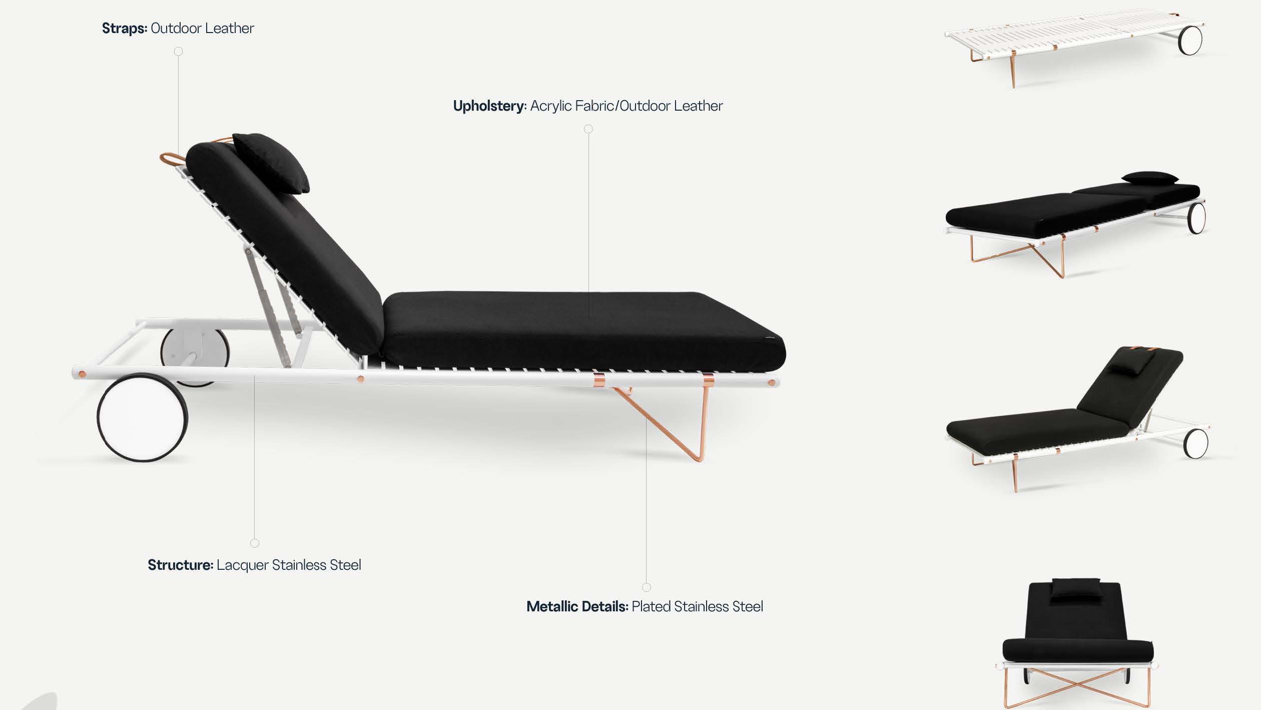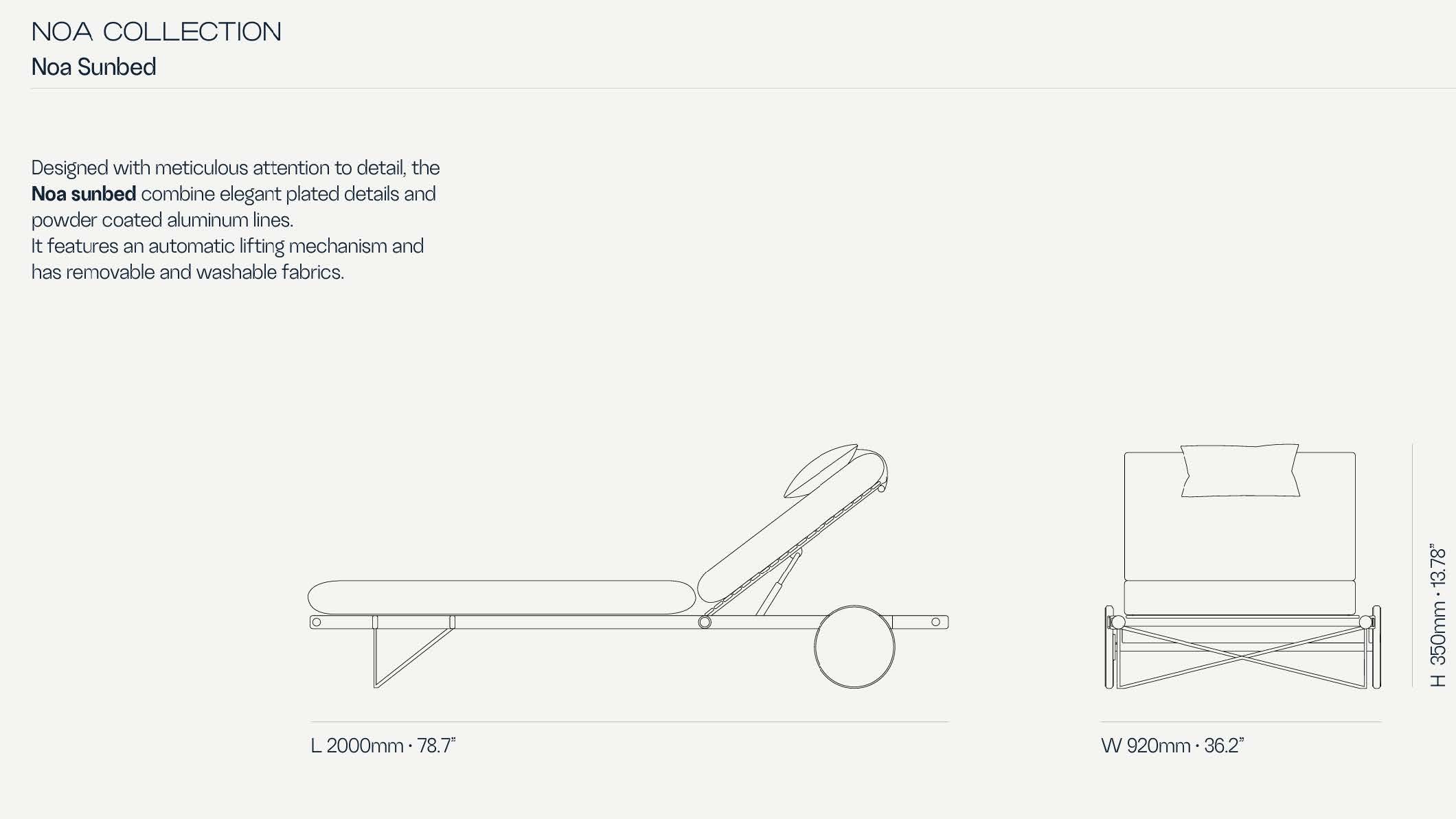 The NOA Outdoor Chaise is defined by clean architectural lines and a quietly luxurious material palette. Crafted in lacquered stainless steel with refined metallic detailing and outdoor leather accents, it brings a tailored, design-forward sensibility to outdoor living. A generously cushioned, weather-resistant seat pairs with an adjustable backrest for effortless comfort, while integrated wheels allow for easy repositioning. Designed for versatility, NOA transitions seamlessly across private terraces, poolside settings, luxury hospitality, and yacht environments. Fully customizable in finishes, fabrics, and detailing, it offers a sophisticated, highly adaptable solution for modern outdoor spaces.