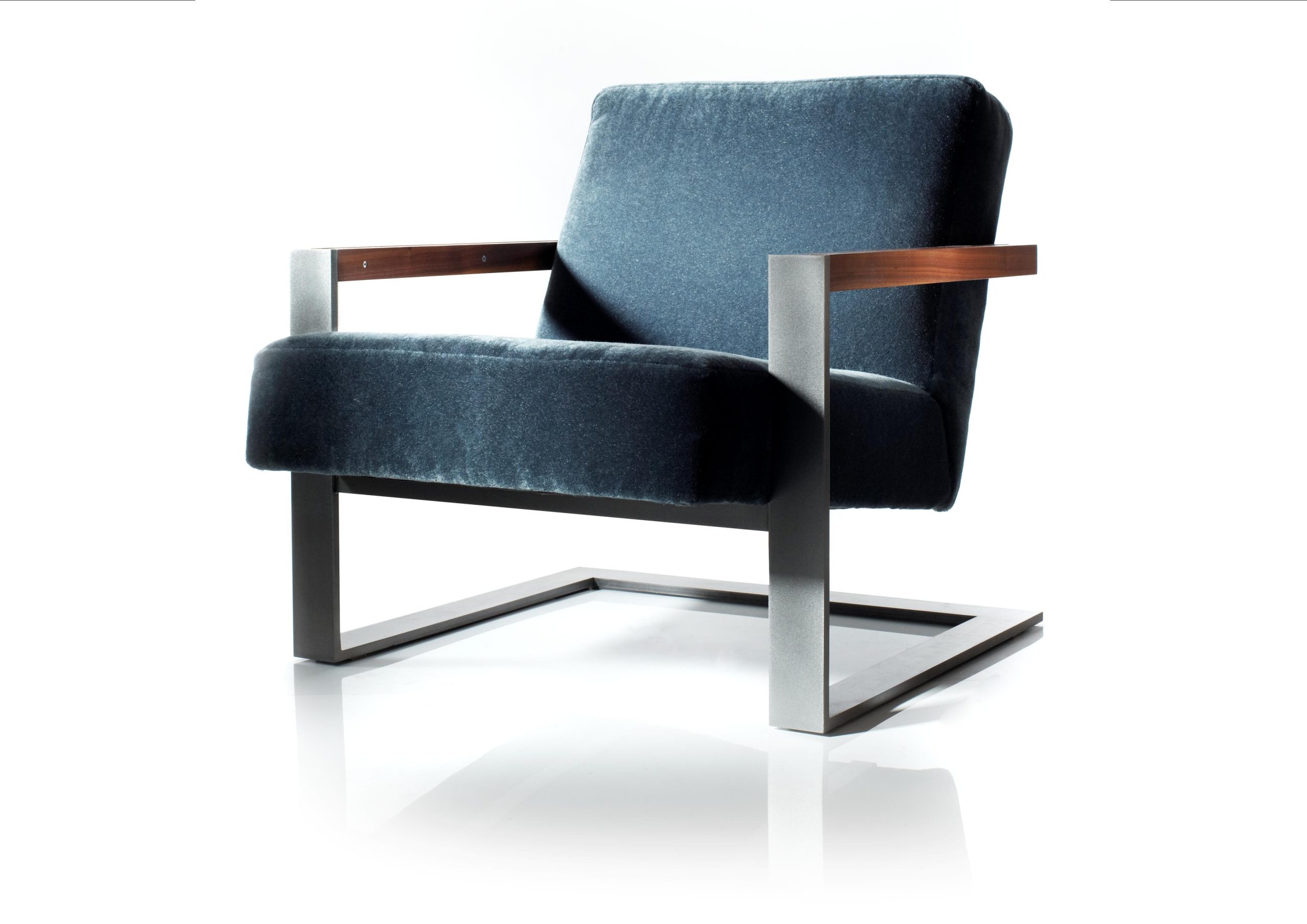 From our Signature Collection the Nova is a sophisticated and comfortable lounge chair with a clever use of negative space which provides just the right amount of flex. One of our most popular lounge chairs it is available in the standard brushed nickel finish or can be upgraded to the specialty edition bonze finish – finished with a walnut arm accent.