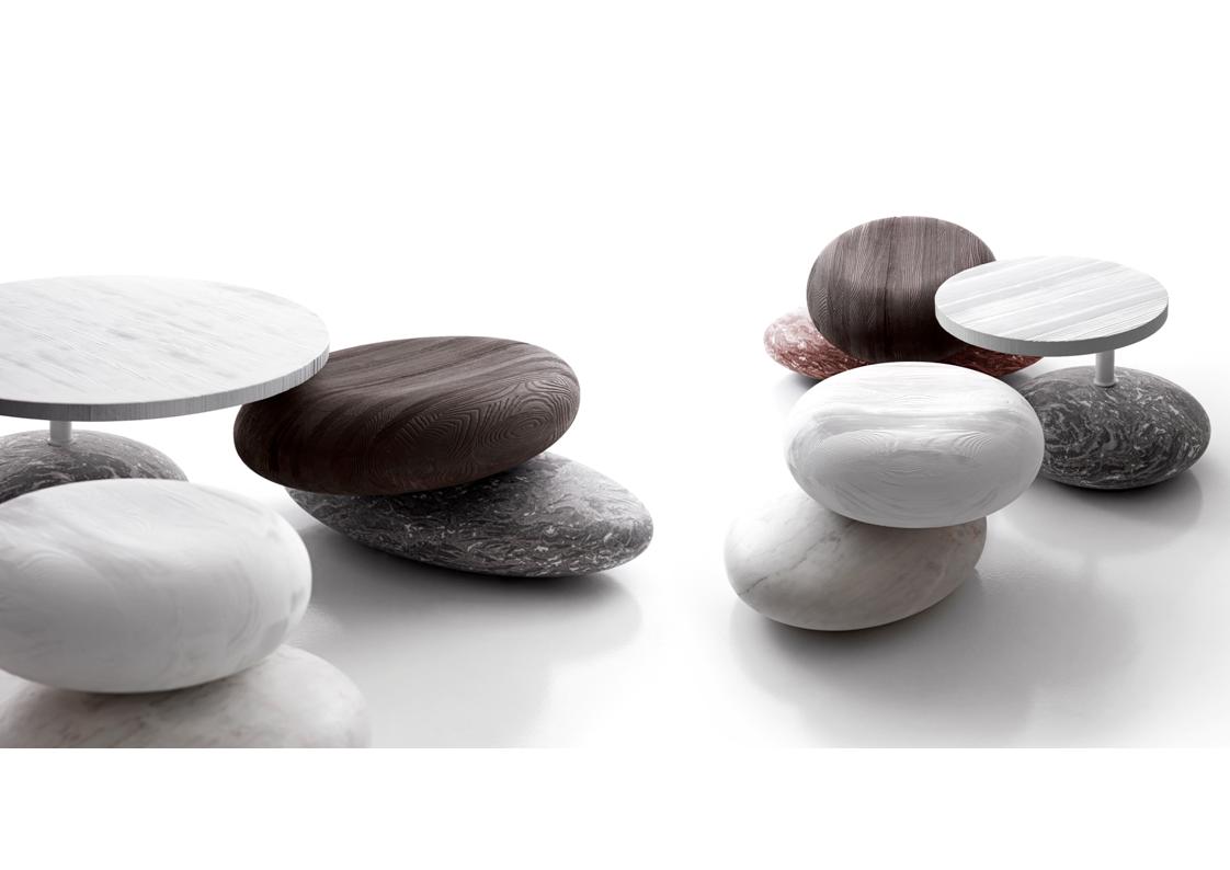 The Pave Series is a seating system realized through the overlap of two natural layers: a marble base and a cork or wood seat in bleached or aged larch. Pavè Stone is a design of new comfort and various solutions for indoor + outdoor use. Proposed in various marble colors and in 3 different sizes – be sure to check out the matching Pave Drink Table as well .
