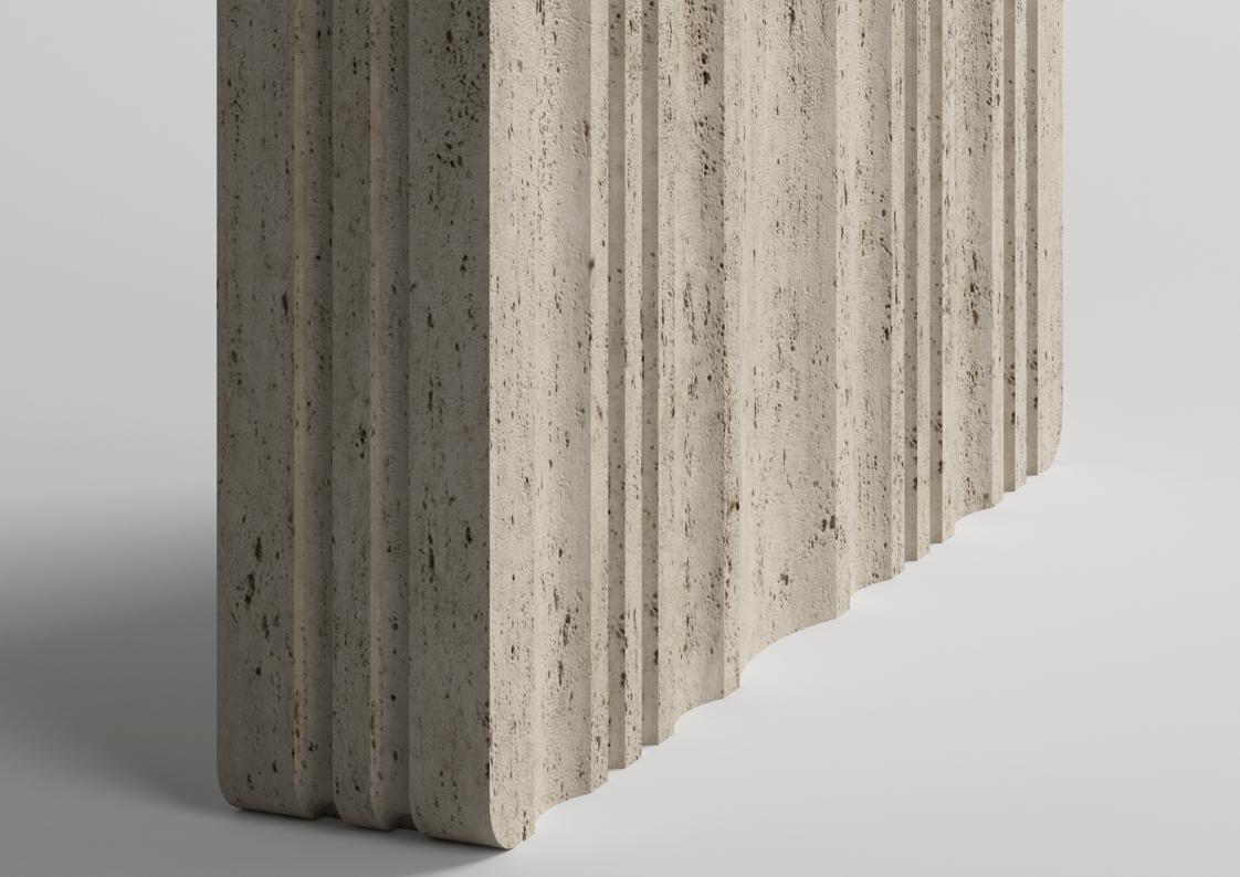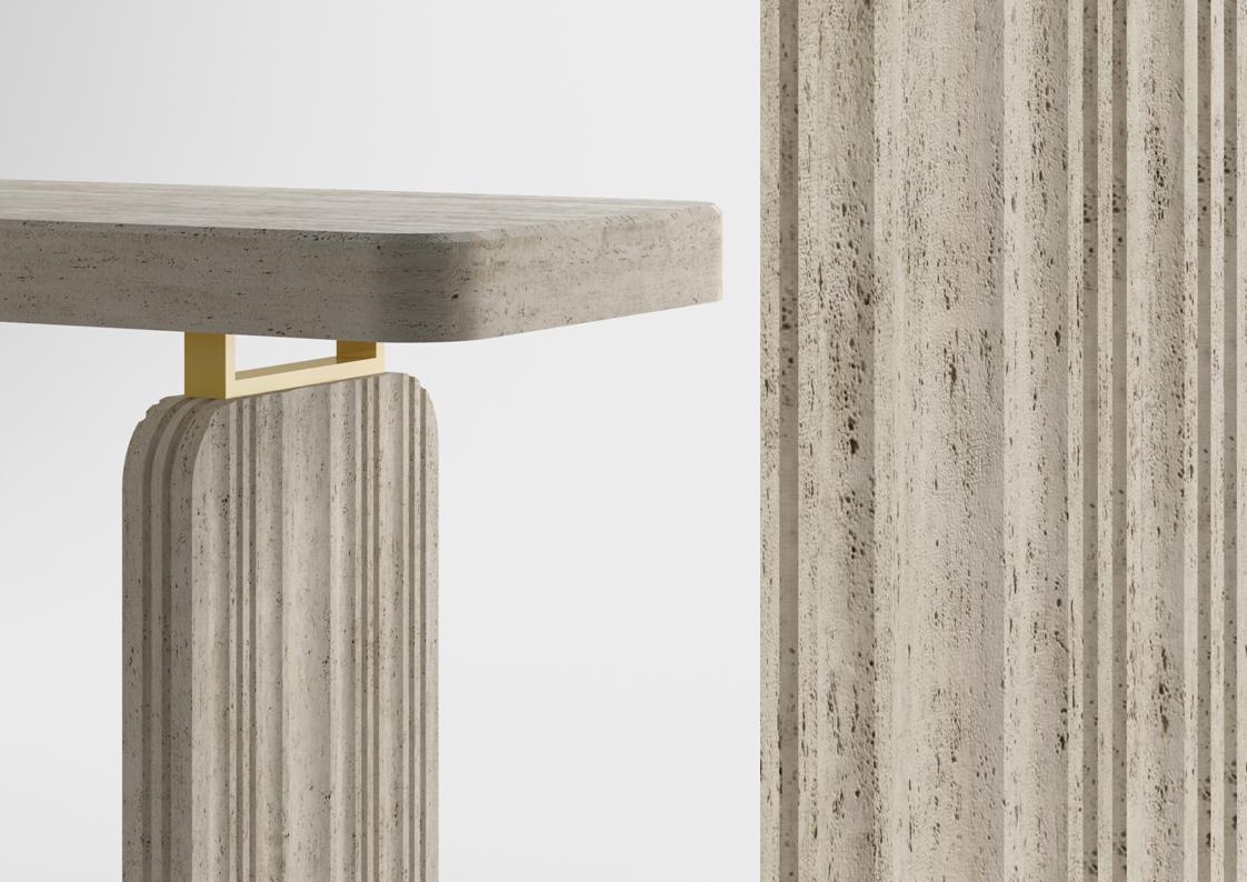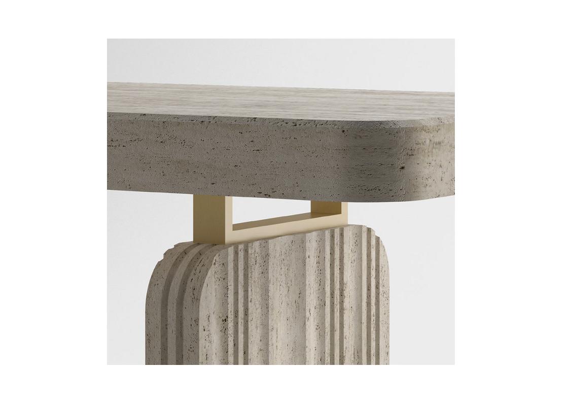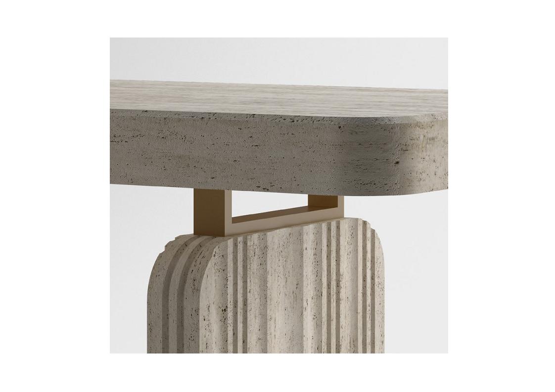 The PURE Stone Series is a new designer collection of luxury stone tables fabricated of natural Travertine for a calming aesthetic, coupled with modern design features. The PURE Console Table is a stunning focal-point table for entry halls, lobbies, living areas, or anywhere you need something light, crisp, pure, and uplifting. The organic stone aesthetic of this table is intentionally versatile, timeless, and elegant. Available in several stone options in your choice of several metal accents and optional design elements.