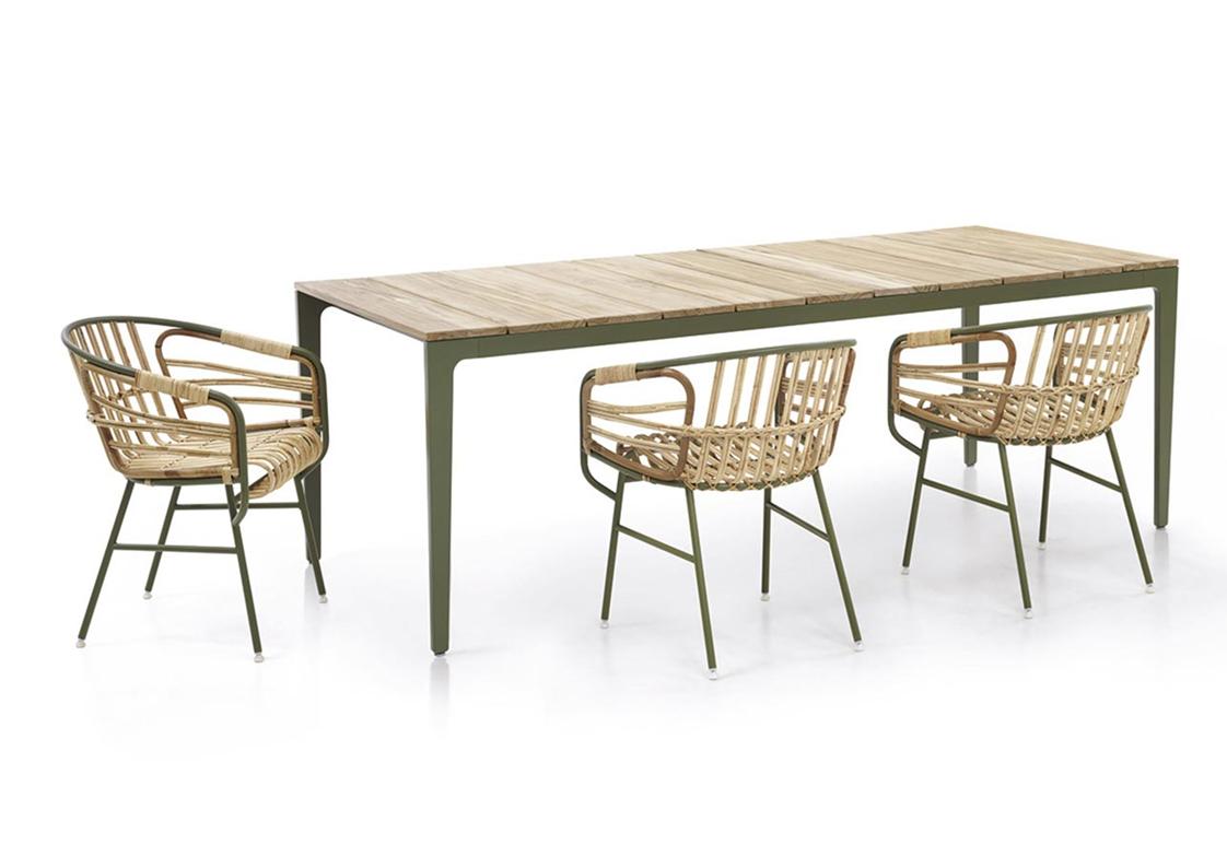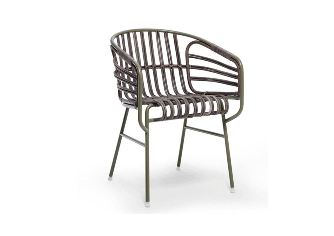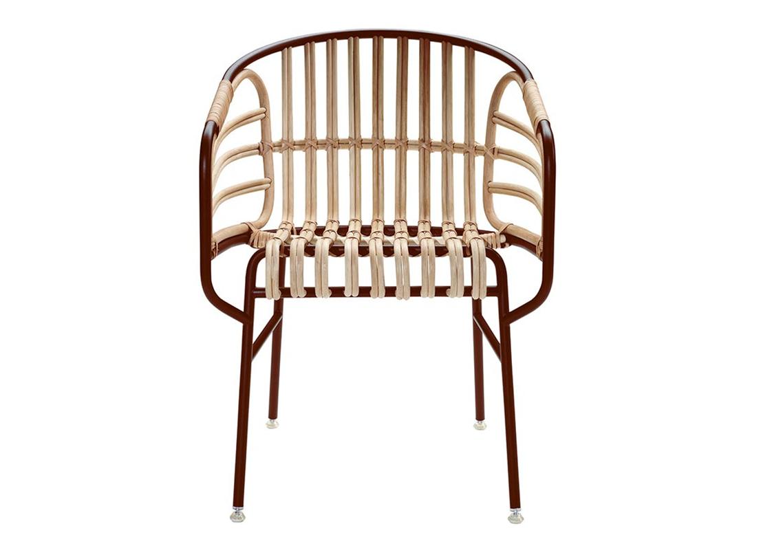 Raphia is the offspring of a research project into the use of materials and how they can be exploited as furnishings. It is the perfect convergence of modernity and tradition, of technology and craftsmanship. An oxymoron that brings together two of the spirits of production in Italy: the metal industry and the small timehonoured manufacturers of rattan and wicker products. The aim of the project is to lend a certain continuity to the tradition of crafting with rattan, one that stretches back to the beginning of the last century when the areas specialising in this craft saw schools and a culture revolving around this material thrive. Today, there remain very few firms which conserve the know-how of this trade, where manual skills and craftsmanship combine to insure that every creation is unique. Raphia embodies this history and tradition in a contemporary context, thanks to a harmonious balance between two materials: the metal structure is the base upon which the wicker and rattan are weaved to create the seating area. Seat cushion optional
