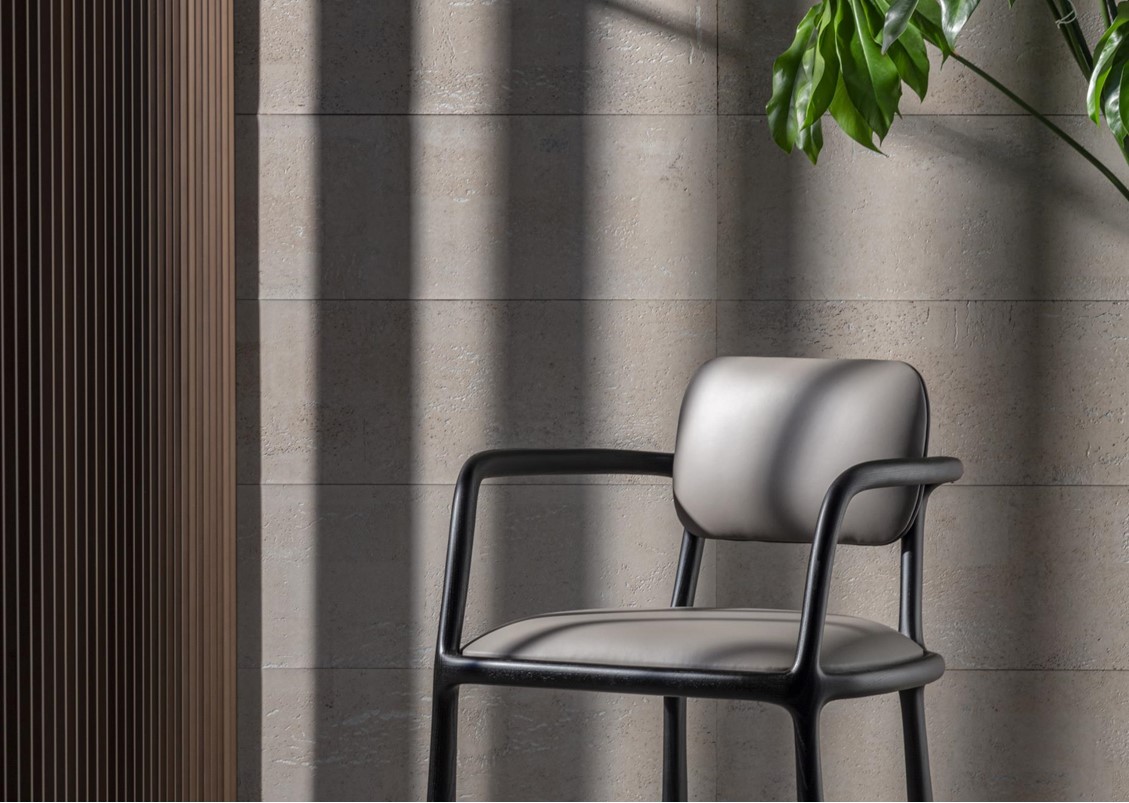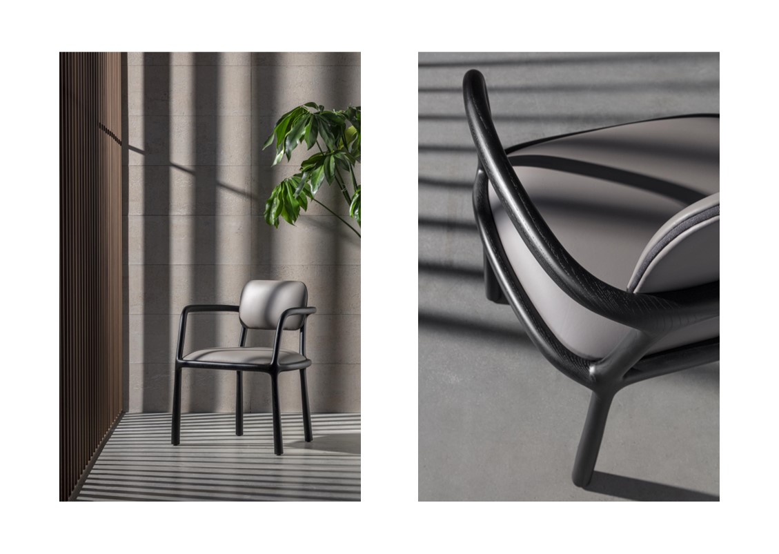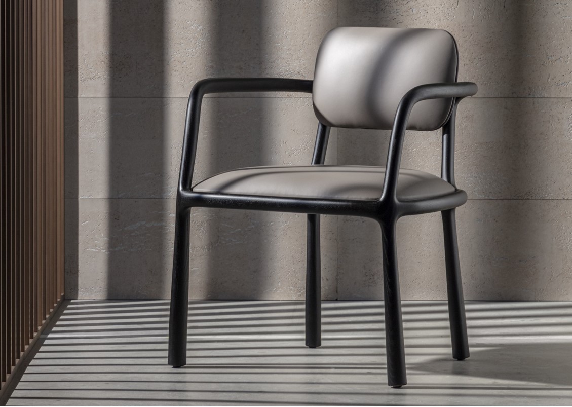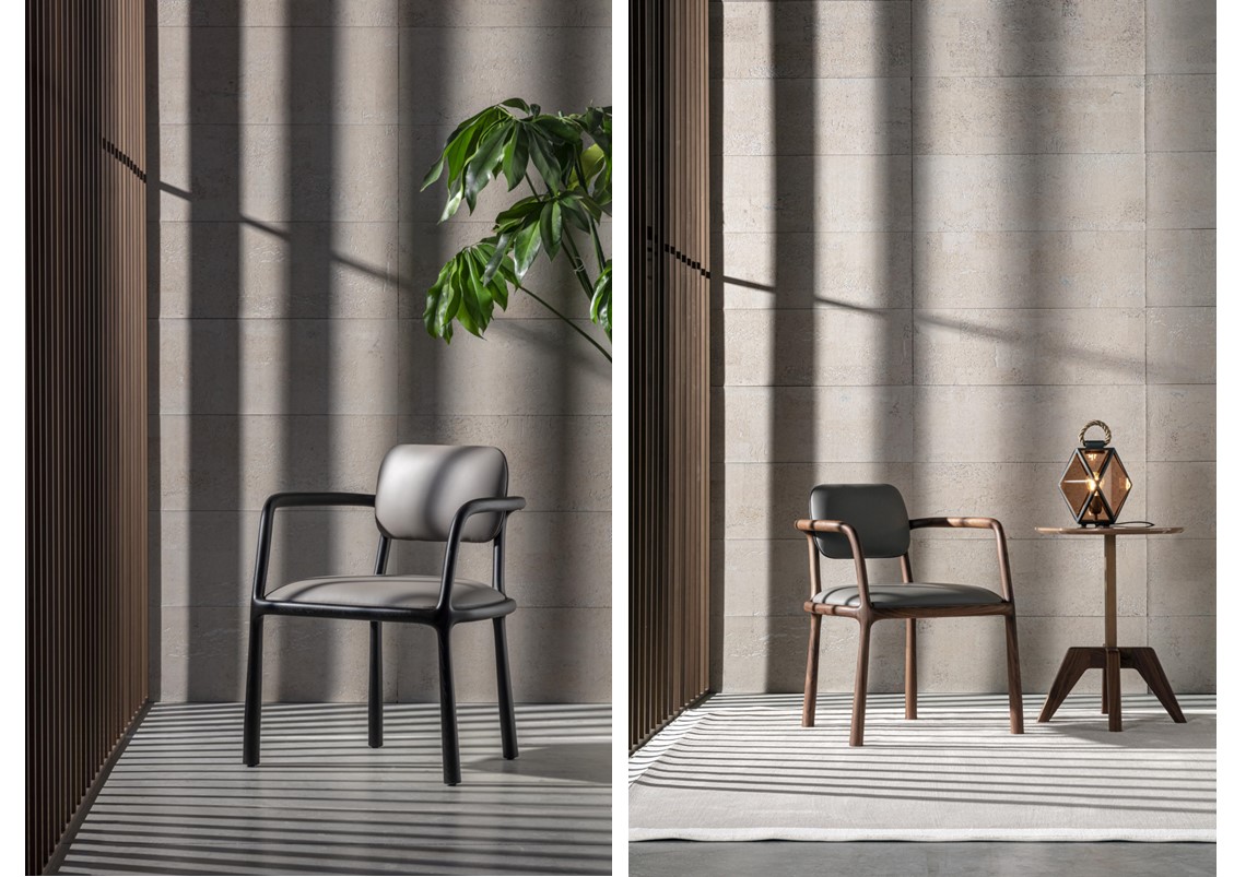 Sinuously elegant and refined, the Roma chair possesses a unique personality that is sure to become iconic. It features a blend of geometry and softness, contrast + harmony. Its solid wooden structure enhances the lightness of the seat and backrest upholstery. A timeless and particularly refined chair.
