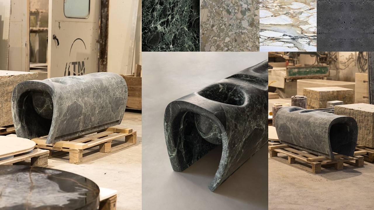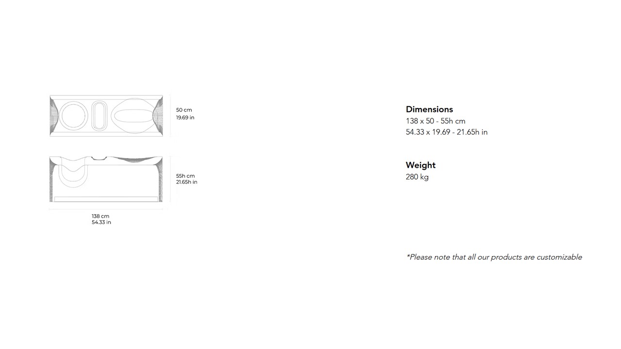 The Samaveta Marble Bench, designed by Karan Desai, extends the language of the collection into a more intimate, human scale—where sculpture meets interaction. Carved from a single block of stone, its form unfolds with a sense of fluid permanence, as though shaped by time rather than force. Defined by a continuous, arching silhouette, the bench reveals a careful interplay of mass and negative space—inviting both visual stillness and physical engagement. Its monolithic presence is softened by subtle curvature and refined transitions, allowing light to move gently across its surface and into its carved recesses. Rooted in a philosophy of unity and balance, Samaveta reflects a convergence of opposites—weight and lightness, structure and flow, object and experience. Each piece is inherently one of a kind, shaped by the natural veining, tonal variation, and character of the stone—ensuring a singular expression of material and form. More than seating, the Samaveta Bench functions as a spatial object—anchoring an interior with quiet authority while offering a moment of pause, reflection, and tactile connection.