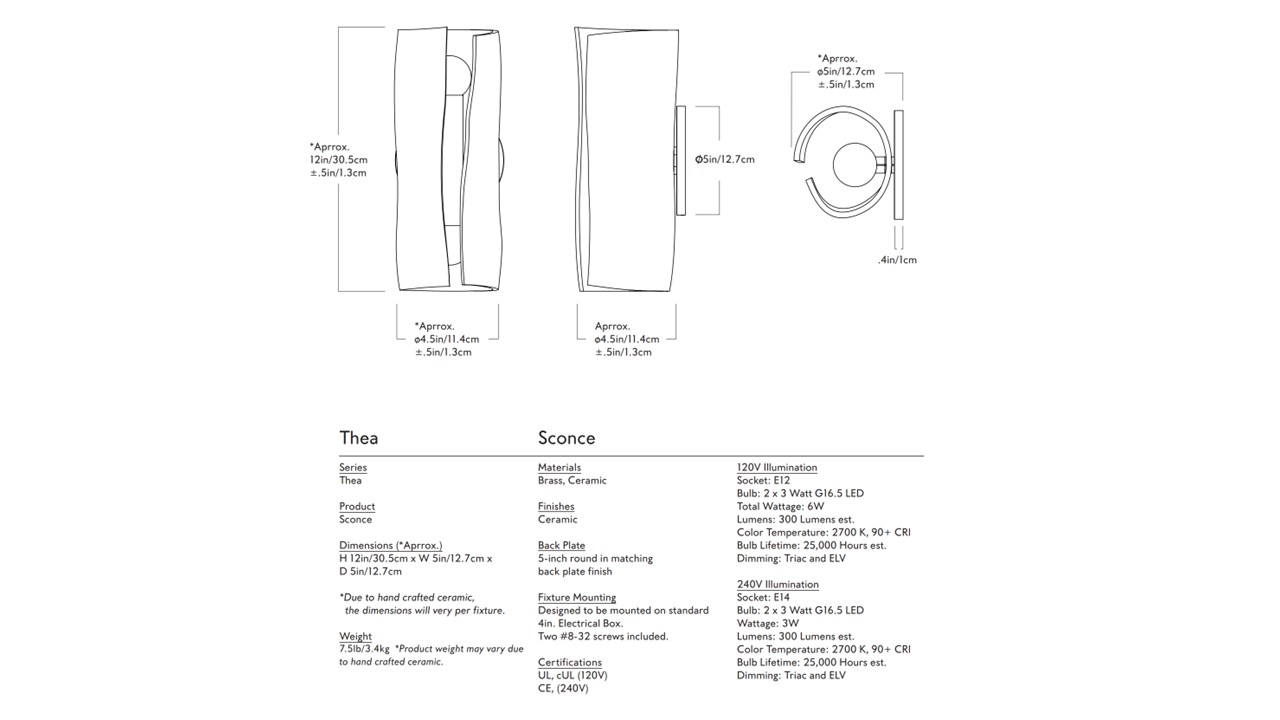 *Please Note: Thea Sconce is handmade and made to order. Differences in shape, glaze, surface, and light expression are expected and integral to the design. Clients seeking a coordinated pair may collaborate with our team to make a selection.