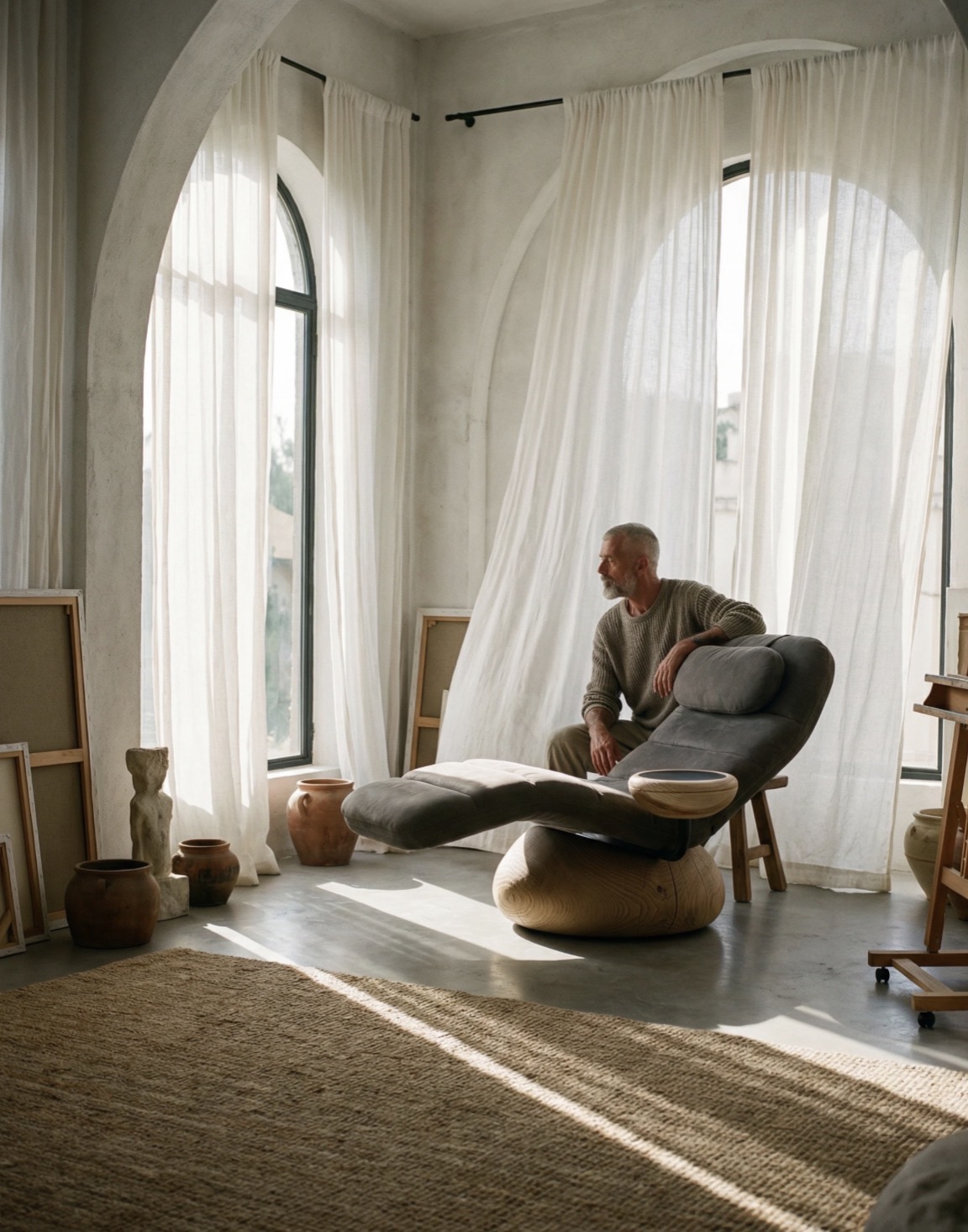The Totem Chaise Lounge is a sculptural expression of comfort and calm, designed to embrace the body with an ergonomic, enveloping form. Its generous proportions and soft upholstery invite deep relaxation, while the integrated headrest and flowing silhouette enhance the sense of ease. Meticulously crafted with noble materials, the Totem pairs supple upholstery with a striking solid cedar base—its natural grain and sculptural presence grounding the design in timeless elegance. Every detail reflects refined craftsmanship, from the seamless contours to the thoughtful integration of function and form. More than seating, the Totem Chaise Lounge is a statement piece: a sanctuary of serenity that brings warmth, sophistication, and balance to contemporary interiors.